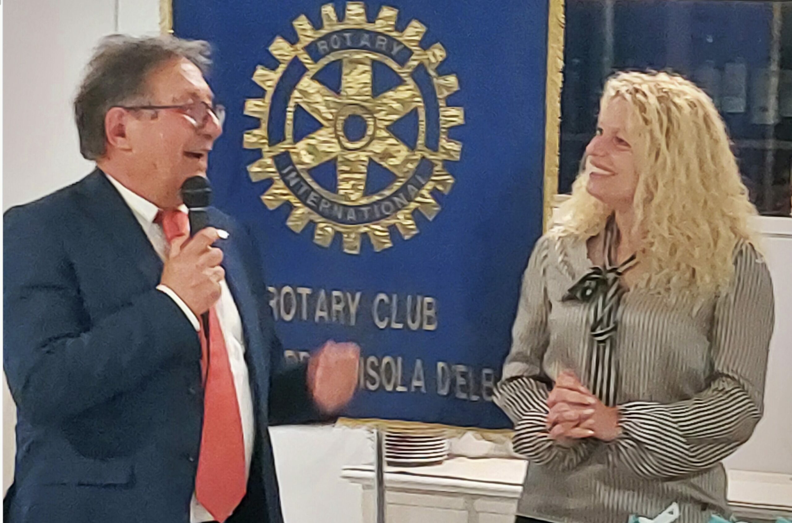 Dopo la premiazione, il Presidente Paolo Ballerini ha sottolineato la rilevanza che la sanità privata deve ricoprire. Una rilevanza che deve esplicarsi non demandando ad essa ogni lacuna presente nel settore pubblico, bensì rendendosi “stampella di supporto” in grado di aiutare il SSN a modernizzarsi più efficacemente ed a rispondere in modo più efficace e tempestivo alle necessità del cittadino. Paolo ha quindi richiamato un concetto tanto importante quanto fondamentale, specialmente per coloro che vivono sul nostro territorio, quale quello della prevenzione, per introdurre il secondo ospite della conviviale rappresentato per l’occasione da Emma Feole ed il suo compagno: La pubblica assistenza di Capoliveri.