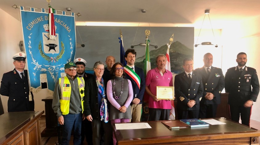 Si è tenuta oggi a Marciana, nella sala consiliare del comune, la cerimonia di consegna dell’encomio di ringraziamento a Pierluigi Costa. Il Sindaco Simone Barbi ha ricordato l’impresa recente di salvataggio in mare e l’impegno costante del “Messaggero del mare” nel divulgare i valori positivi del rispetto e dell’amore per l’ambiente e dell’importanza della solidarietà verso il prossimo.