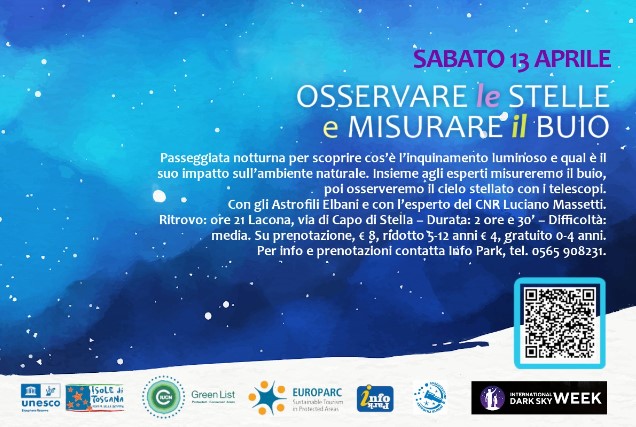 Sabato 13 aprile, in occasione dell’International Dark Sky Week, in collaborazione con l’Associazione Astrofili Elbani e con l’esperto del CNR Luciano Massetti, il Parco Nazionale Arcipelago Toscano propone un evento serale per riscoprire il valore del buio e parlare di inquinamento luminoso.