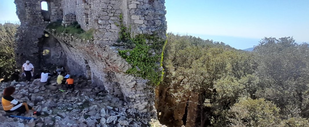 Il cammino è continuato fino al bivio per la Torre del Giove e ha percorso la breve salita finalmente all’ombre. Giunti alle ancora imponenti rovine, i camminatori lenti hanno potuto ammirare la bellezza di un luogo misterioso che rischia di cedere sotto il peso del tempo e dell’abbandono e all’ambra di quella storia e del lecceto che la circonda e la nasconde, i trekkers si sono rifocillati e hanno parlato di passato e futuro e del Giove come fulcro centrale per raccontare la bellezza di luoghi dove è iniziata la più antica storia dell’avventura umana all’Isola d’Elba, un percorso che dalla preistoria va alle miniere e ai giorni nostri, un “braccio” culturale e naturale unico della Grande Traversata Elbana della quale si parlerà anche al terzo worshop sulla GTE Organizzato da Legambiente e Parco Nazionale il 18 aprile alle ore 10,00 al B&B Capo Pero.