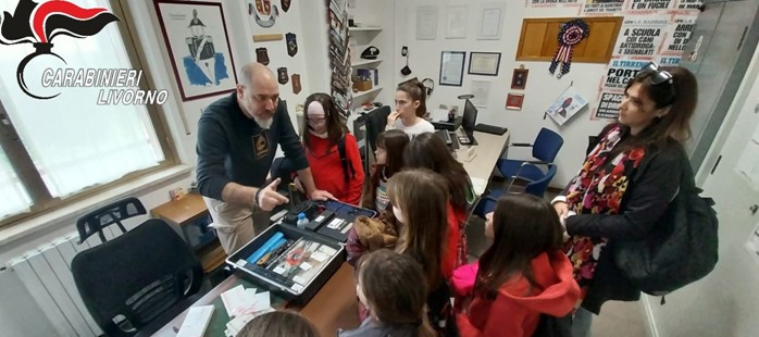 La caserma dei Carabinieri di Portoferraio, sede del Comando Compagnia, del Nucleo Operativo e Radiomobile e della Stazione Carabinieri, ha ospitato diverse scolaresche in visita, l’ultima una 4^ elementare della Scuola San Rocco di Portoferraio. Nei giorni scorsi si sono avvicendati gli alunni delle 5^ elementari di Rio, mentre in precedenza era stata la volta degli alunni delle 5^ elementari di Capoliveri. Nel complesso, circa 80 bambini accompagnati dai loro docenti sono stati accolti dal Comandante della Compagnia Carabinieri di Portoferraio, Capitano Giuseppe Boccia, e dal personale della Stazione e del Nucleo Operativo e Radiomobile. Dopo aver ricevuto qualche accenno sulla sede, sono stati accompagnati “dietro le quinte” alla scoperta di cosa succede all’interno di una caserma dei Carabinieri allo scopo di avvicinare i giovani alle istituzioni ed accrescere il loro senso civico. È stata mostrata loro una “Gazzella”, l’autovettura in dotazione al servizio di pronto intervento dell’Arma ed adibita alla guida veloce in caso di emergenza. Sirene spiegate, a scopo dimostrativo, anche per le moto dell’Arma sulle quali bambini e bambine non hanno esitato a salire in sella per farsi fotografare dagli insegnanti. Infine, è stata data loro una piccola dimostrazione, particolarmente gradita, di sopralluogo ed acquisizione dell’impronte digitali con una simulazione che li ha visti calarsi nelle vesti di giovani investigatori alla ricerca delle impronte sulla scena del crimine. Ai bambini è stato spiegata la funzione del nuovo numero unico di emergenza “112” e l’importanza di rivolgersi sempre ai Carabinieri anche solamente per chiarire dei semplici dubbi. Tante le tematiche di legalità affrontate per l’occasione dai militari dell’Arma, anche allo scopo di far loro conoscere le insidie che possono coinvolgerli direttamente o riguardare qualche coetaneo: il bullismo, il cyberbullismo e la violenza giovanile. Non una conferenza ma un vero e proprio momento di confronto diretto, un dibattito fatto di domande e risposte ai quesiti dei giovani visitatori, per dimostrare quanto la figura del Carabiniere sia più vicina al “loro mondo” di quanto si pensi. Carabinieri ed istituzioni scolastiche insieme perché, per rispettare le regole, bisogna prima conoscerle fino in fondo, capirne la necessità e farle proprie sin dalla giovane età, supportando i bambini di oggi nel loro divenire gli adulti di domani; un connubio perfetto dove l’Arma è vicina alla scuola. Mattinate intense, gioiose ma formative in cui i giovani studenti hanno potuto avvicinarsi all’Arma dei Carabinieri. Un ringraziamento ai Dirigenti Scolastiche ed agli insegnanti che hanno accompagnato le scolaresche.