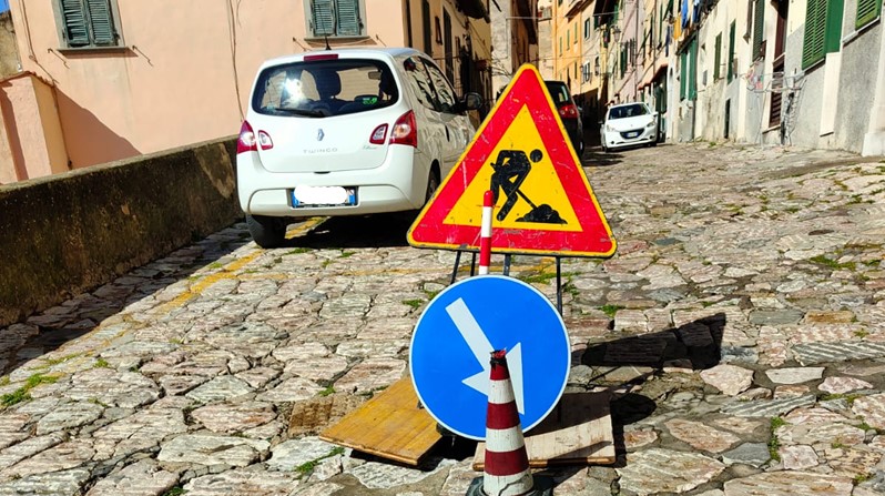 Qui in via della Fonderia a Portoferraio è due settimane che ha ceduto un pezzo di strada .. sono intervenuti mettendo il segnale ma non si è visto nessuno per ripararlo. Questo crea un restringimento della strada e comunque un pericolo. Vi riportiamo le lamentele di tutta la via.