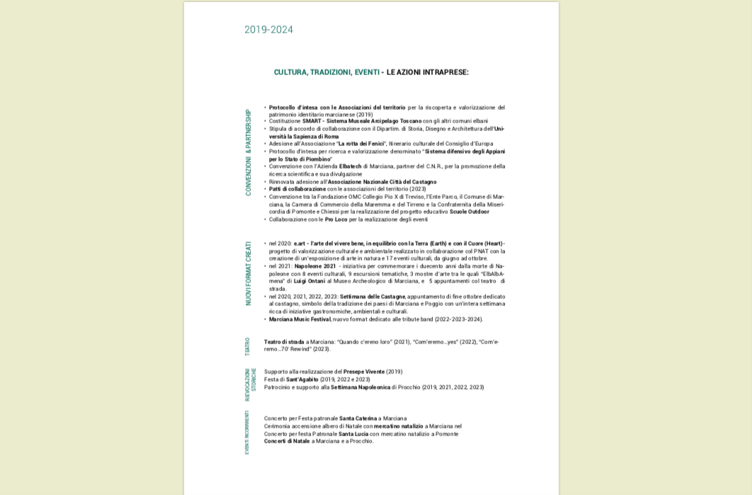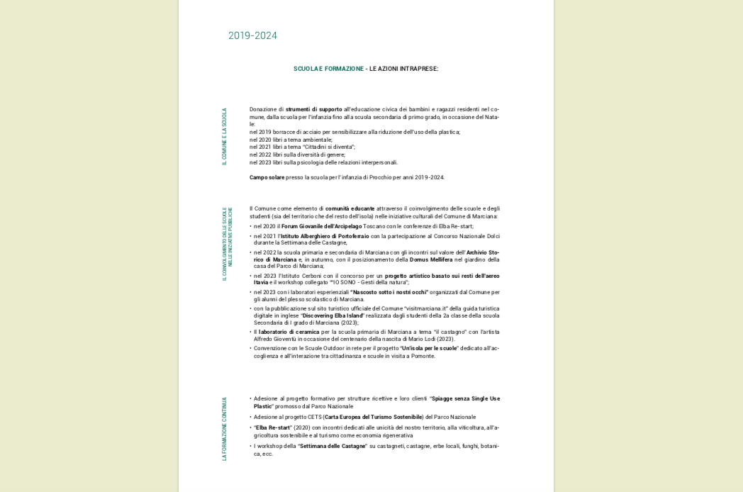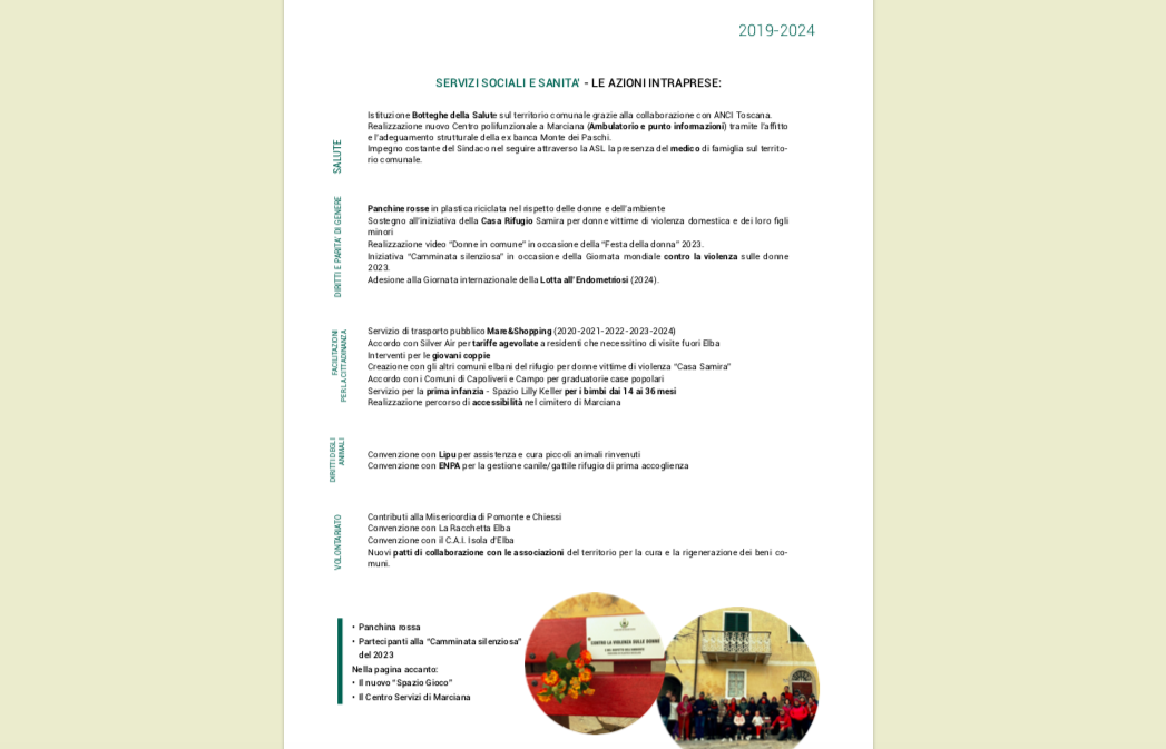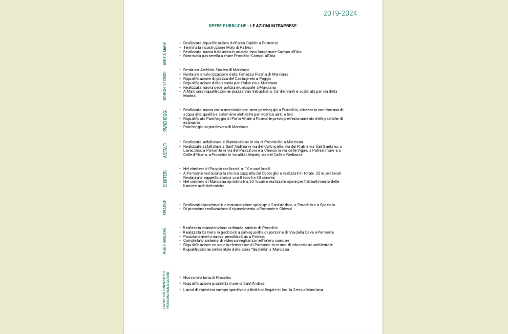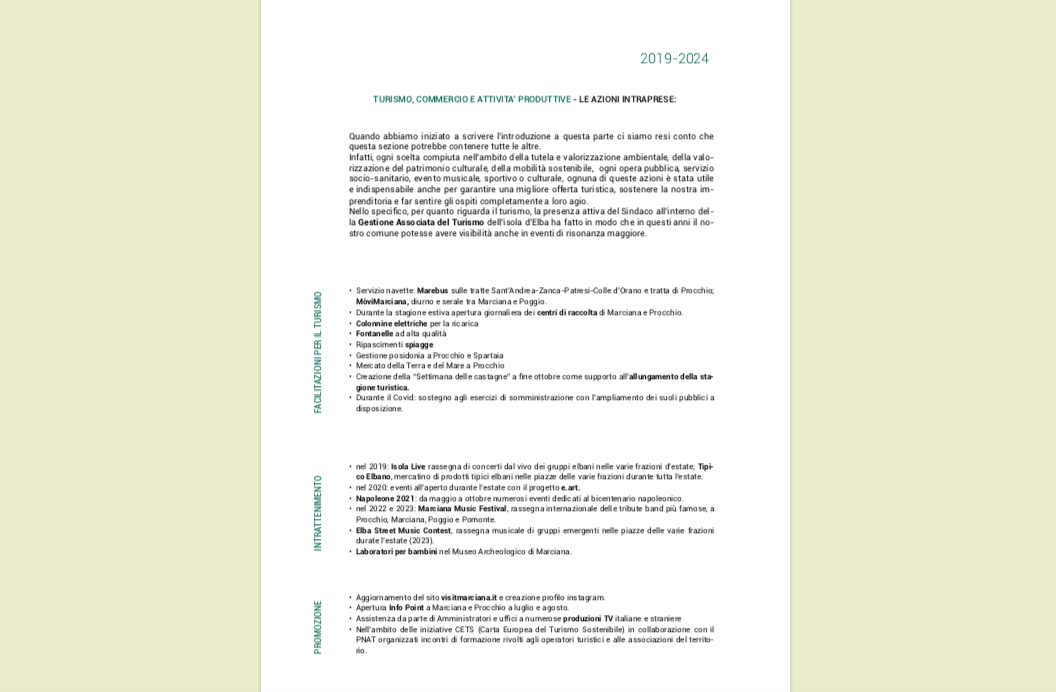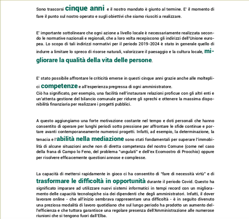 2019-2024: i cinque anni del mandato dell’Amministrazione comunale di Marciana in sintesi