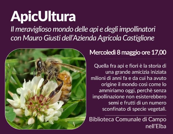 Mercoledì 8 maggio alle ore 17,00 avremo l’onore di ospitare Mauro Giusti dell’Azienda Agricola Castiglione per una discussione sul mondo affascinante delle api e degli impollinatori.