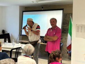 Ancora appuntamenti per i Messaggeri del Mare, i noti Pierluigi Costa e Lionel Cardin, attivissimi in questo periodo. Questa volta sono stati presenti all’incontro con l’università del tempo libero organizzata da Donatella Maffoni e Luigi Serena. Sono intervenuti per l’occasione anche i soci Giacomo Barra, Francesco Semeraro, Bruno Liconti, Marco Baiocco e Magdalena Macejevska. Durante l’evento sono stati proiettati i filmati delle avventure a nuoto dei 2 fondatori dei Messaggeri del Mare Lionel Cardin e Pierluigi Costa che da sempre si “spendono” per cause di solidarietà e di tutela ambientale. Uno dei temi trattati è stata la sicurezza in mare e soprattutto l’importanza di posizionare le boe di delimitazione delle aree riservate esclusivamente ai bagnanti davanti alle spiagge. Si è parlato anche della staffetta nazionale lanciata dai Messaggeri del Mare da Lampedusa al Monte Bianco a favore dei piccoli ospedali, patrocinata da Rai Responsabilità Sociale, e proprio in occasione della maratona dell’Isola d’Elba, il Messaggero Gianni Tacchella ha portato per tutti i 42 km, il testimone dedicato a questa missione. Dopo l’incontro elbano detto, il Costa ne ha vissuto un altro a Milano, molto emozionante a Palazzo Marino, durante la cerimonia degli Awards dedicata alle eccellenze del capoluogo lombardo, dove ha raccontato i Messaggeri del Mare al pubblico. La manifestazione organizzata e diretta da Rachele Capristo ha visto come premiati, la Fondazione Rava, la Professoressa Domenica Tufaro, l’Imprenditrice Bruna Farci e l’ingegnere Andrea Belli. Pierluigi, l’AD Giovanni Palmieri, Rotary club Milano Concordia, l’associazione Pugliesi di Milano , l’associazione nazionale Alpini di Milano , e alla violinista Elisabetta Danelli. Tra i presenti all’appuntamento milanese vi erano anche il terzo fondatore dei Messaggeri del Mare Sergio Frezzolini e, appunto, la messaggera Rachele Capristo, Direttrice dell’Associazione “Insieme con merito”