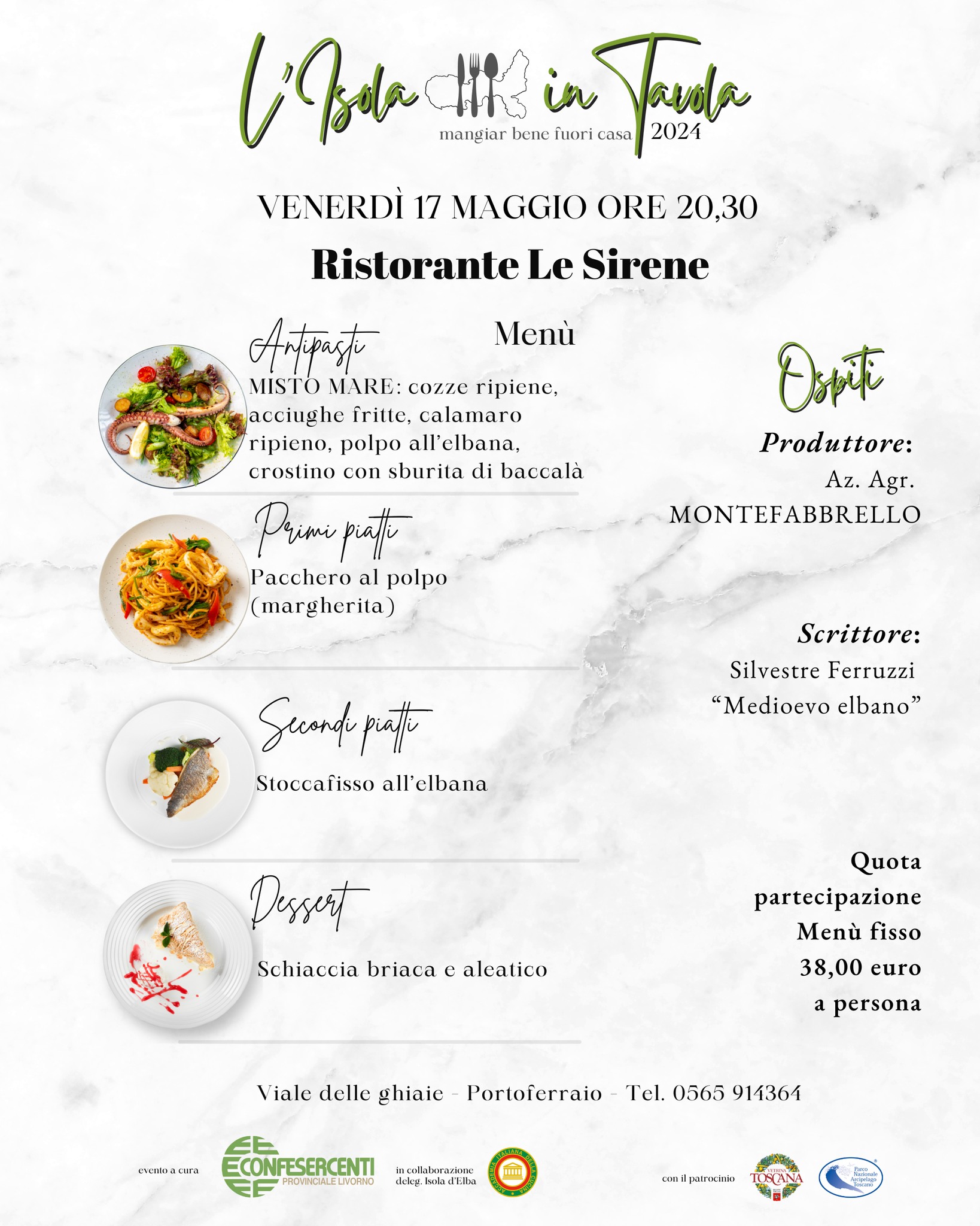 A Portoferraio, di fronte al mare cristallino de Le ghiaie,si svolgerà presso il ristorante Le sirene la sesta serata