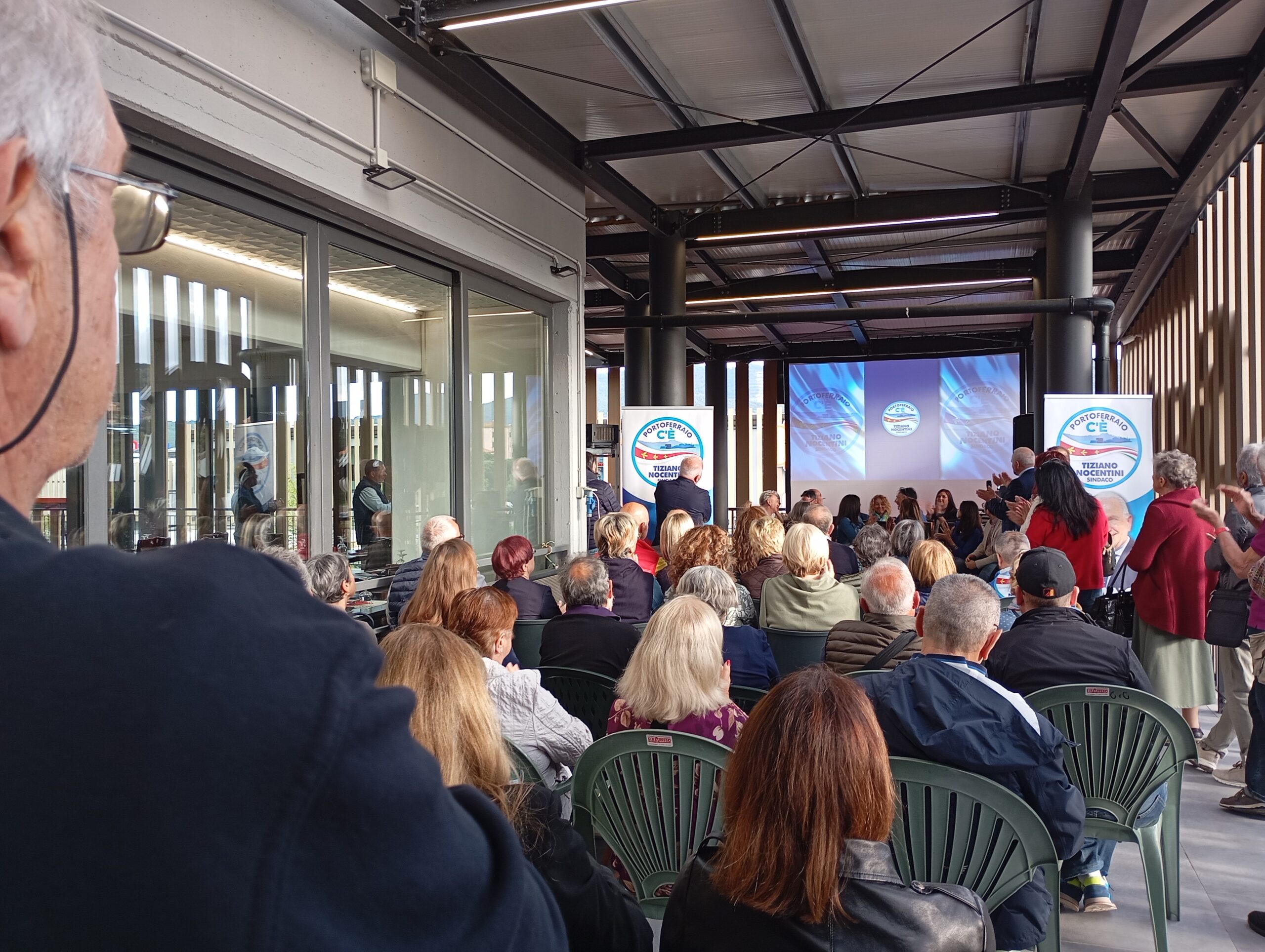 Solo posti in piedi alla presentazione della lista “Portoferraio c’è”, che affiancherà il candidato a sindaco Tiziano Nocentini in vista delle prossime elezioni amministrative del 8 e 9 giugno 2024. E’ stata una vera e propria festa, quella che si è tenuta nella terrazza del Parco Commerciale delle Antiche Saline nel tardo pomeriggio di giovedì 16 maggio. Presenti, oltre ai candidati, un gran numero di cittadini che hanno riempito fino all’inverosimile la terrazza. Dopo un breve discorso introduttivo di Tiziano Nocentini , è stato proiettato un filmato con delle bervi biografie dei 16 candidati. “Nove donne e sette uomini. Otto laureati. Età media 45 anni – ha ricordato ai presenti Tiziano Nocentini – fra loro medici, avvocati, operatori turistici, esperti di comunicazione, operai, commercianti, agricoltori. Sedici persone tenute insieme da un comune denominatore: l’orgoglio portoferraiese, l’attaccamento alla loro città a alla loro terra”.