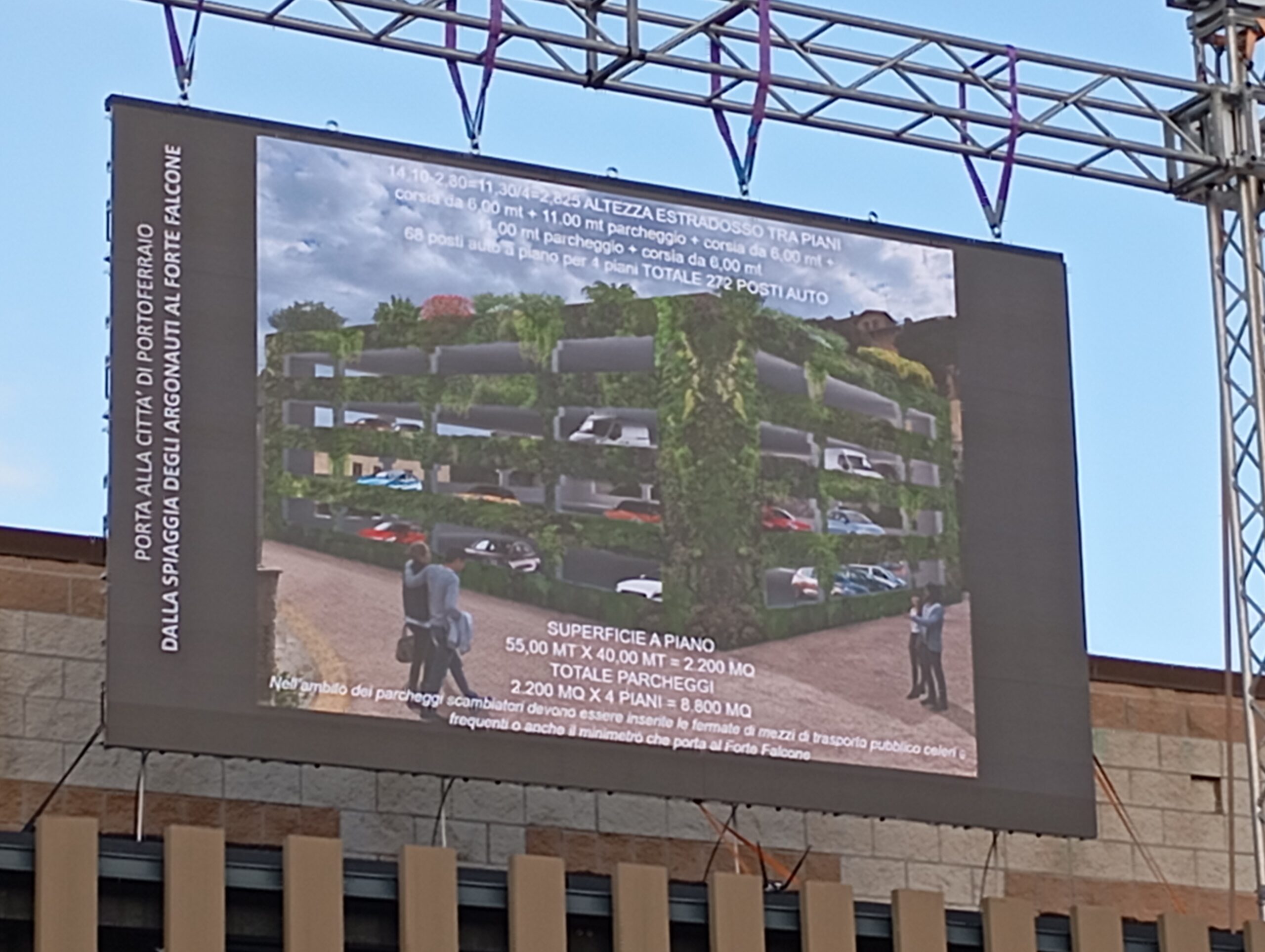 Un progetto di 12 anni fa che nessuno è mai riuscito ad adottare, nonostante l’evidenza della bontà delle idee e della compatibilità delle stesse con la storia e la morfologia della città di Portoferraio. Una nuova porta di accesso al centro storico della città, come la ha definita l’architetto portoferraiese Massimiliano Pardi, che ne ha curato la presentazione alla cittadinanza nel corso di una affollatissima iniziativa della lista civica “Portoferraio c’è” e del suo candidato a sindaco Tiziano Nocentini che si è svolta sabato 1 giugno nel Piazzale dell’Arcipelago, alle Antiche Saline.. Dalle Ghiaie verso le Fortezze Medicee, rivisitando gli spazi e i loro utilizzi, creando un percorso vivibile che accompagni con una viabilità alternativa i visitatori di Portoferraio verso le Fortezze, per poi discendere nella darsena medicea. Il tutto preceduto da un parcheggio multipiano all’interno della ex caserma della Finanza di viale Tesei, con un mini-metrò che accompagna i visitatori nei loro percorsi, che poi sfociano verso la rada ed il resto del territorio attraverso una mobilità alternativa fatta di piste ciclabili e di collegamenti via mare. La presentazione è stata fatta attraverso uno schermo gigante “led-wall” e trasmessa in diretta facebook da Edicola Elbana Show.