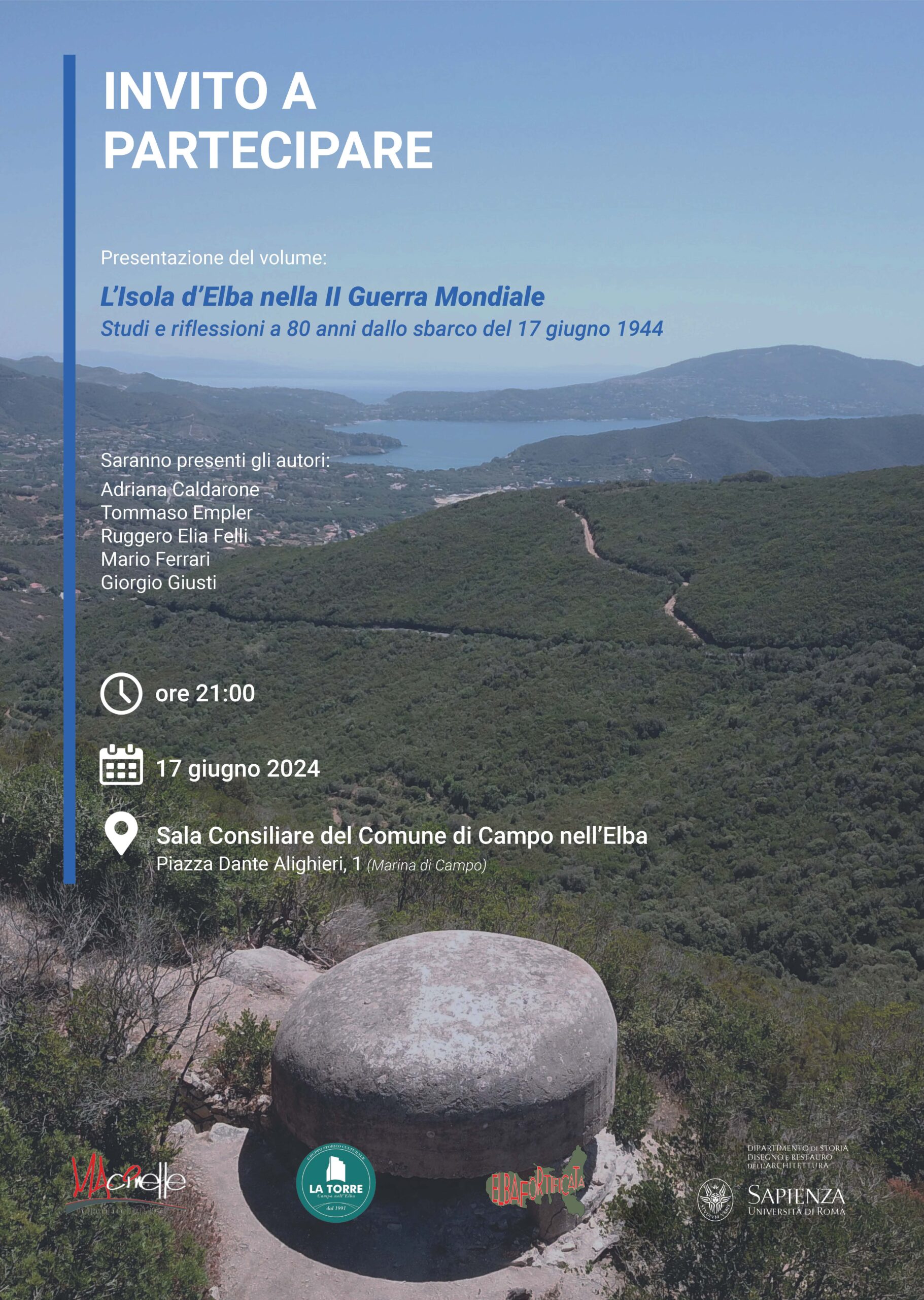 il 17 giugno p.v. alle ore 21:00 presso la sala consiliare del Comune di Campo nell’Elba, sarà presentata la pubblicazione, frutto di un accordo di collaborazione scientifica con il Dipartimento di Storia disegno e restauro dell’architettura – Sapienza Università di Roma, dal titolo:
