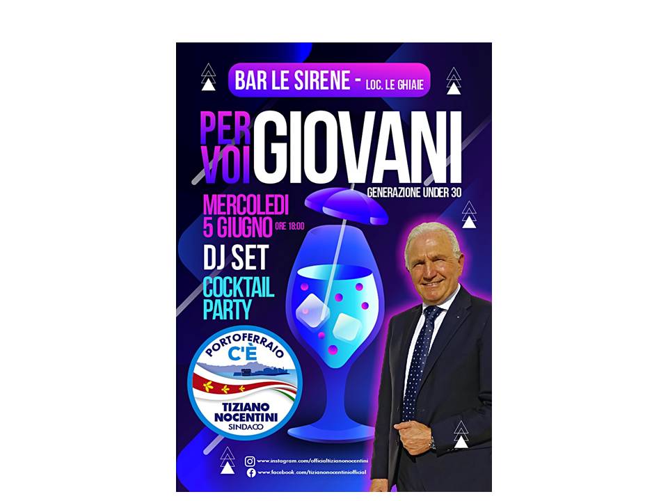 “Se volete davvero cambiare, ricordatevi di andare a votare”. Questo il messaggio che il candidato a sindaco di Portoferraio Tiziano Nocentini e la sua lista civica “Portoferraio c’è” lanceranno ai giovani della fascia di età “under 30”, protagonisti dell’evento che si terrà mercoledì 5 giugno dalle 18 in poi alle Ghiaie, in prossimità del Bar “Le Sirene”. “Per voi giovani”, questo il nome scelto per l’evento, parodiando una trasmissione radiofonica della RAI che introdusse negli anni ’60 la musica rock e pop fra i giovani dell’epoca.