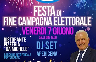 Si terrà dalle 19 di venerdì 7 giugno 2024 presso il Ristorante Pizzeria “da Michele”, alla Banchina Alto Fondale, la Festa di fine Campagna Elettorale organizzata dalla lista civica “Portoferraio c’è”.