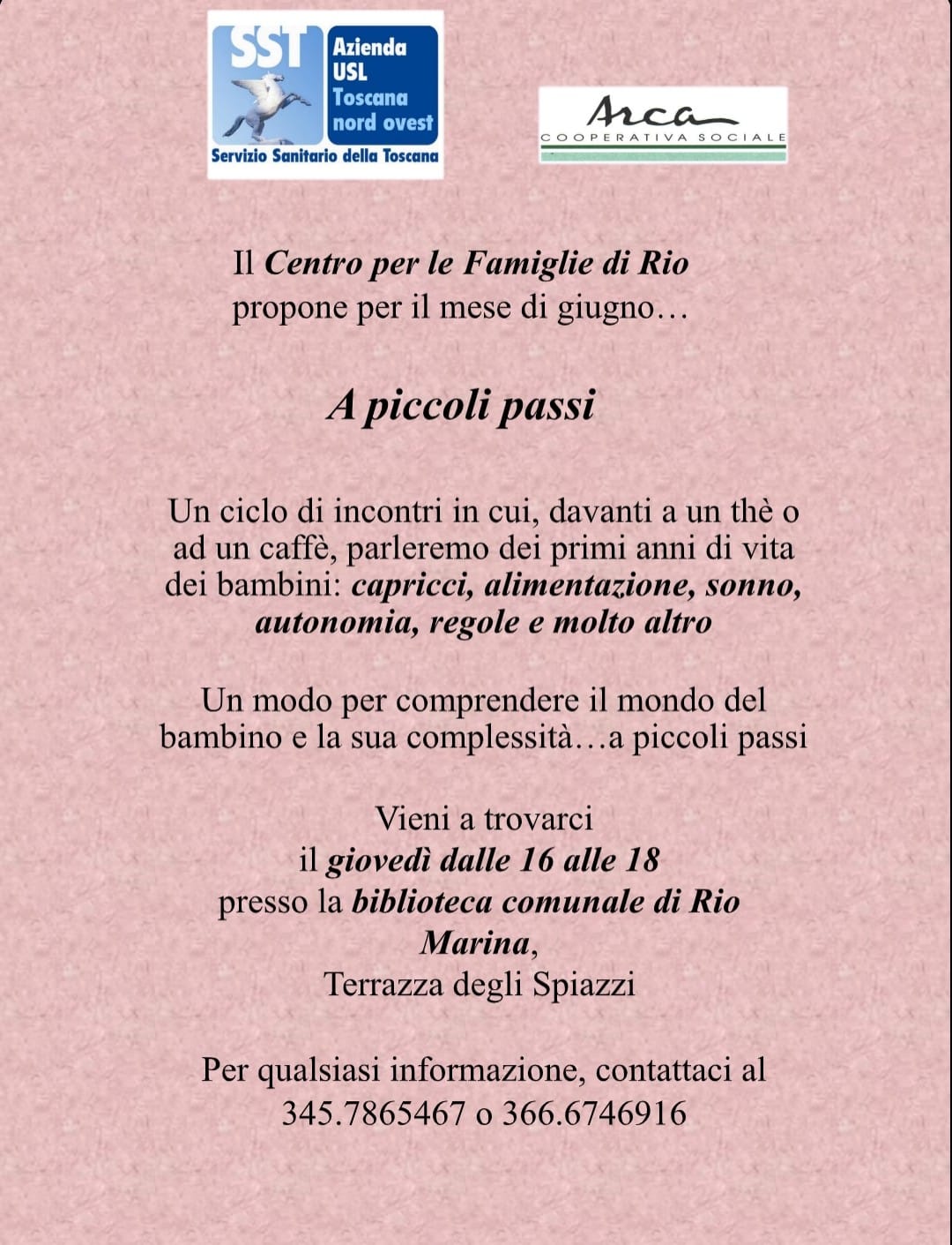 Una nuova attività è stata prevista per il mese di giugno al nuovo Centro per le Famiglie, l’iniziativa nata dalla collaborazione fra il Comune di Rio, L’Azienda USL Toscana Nord Ovest e Arca Cooperativa Sociale.