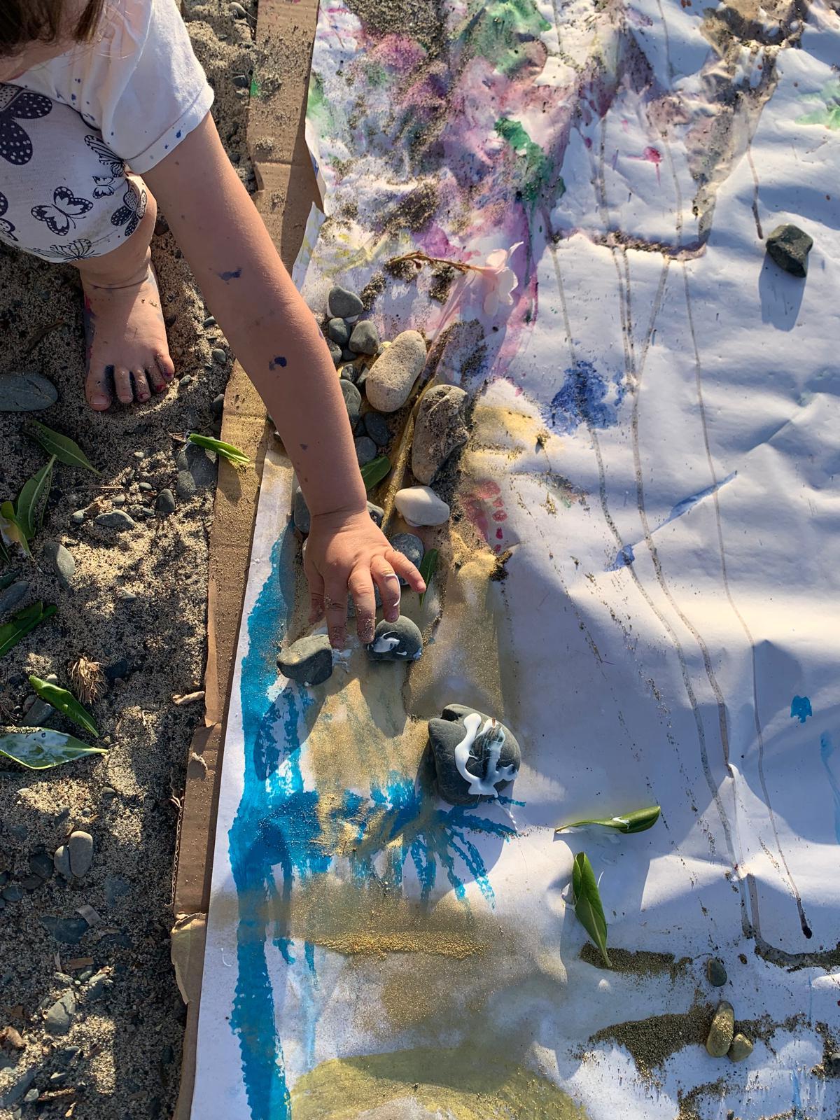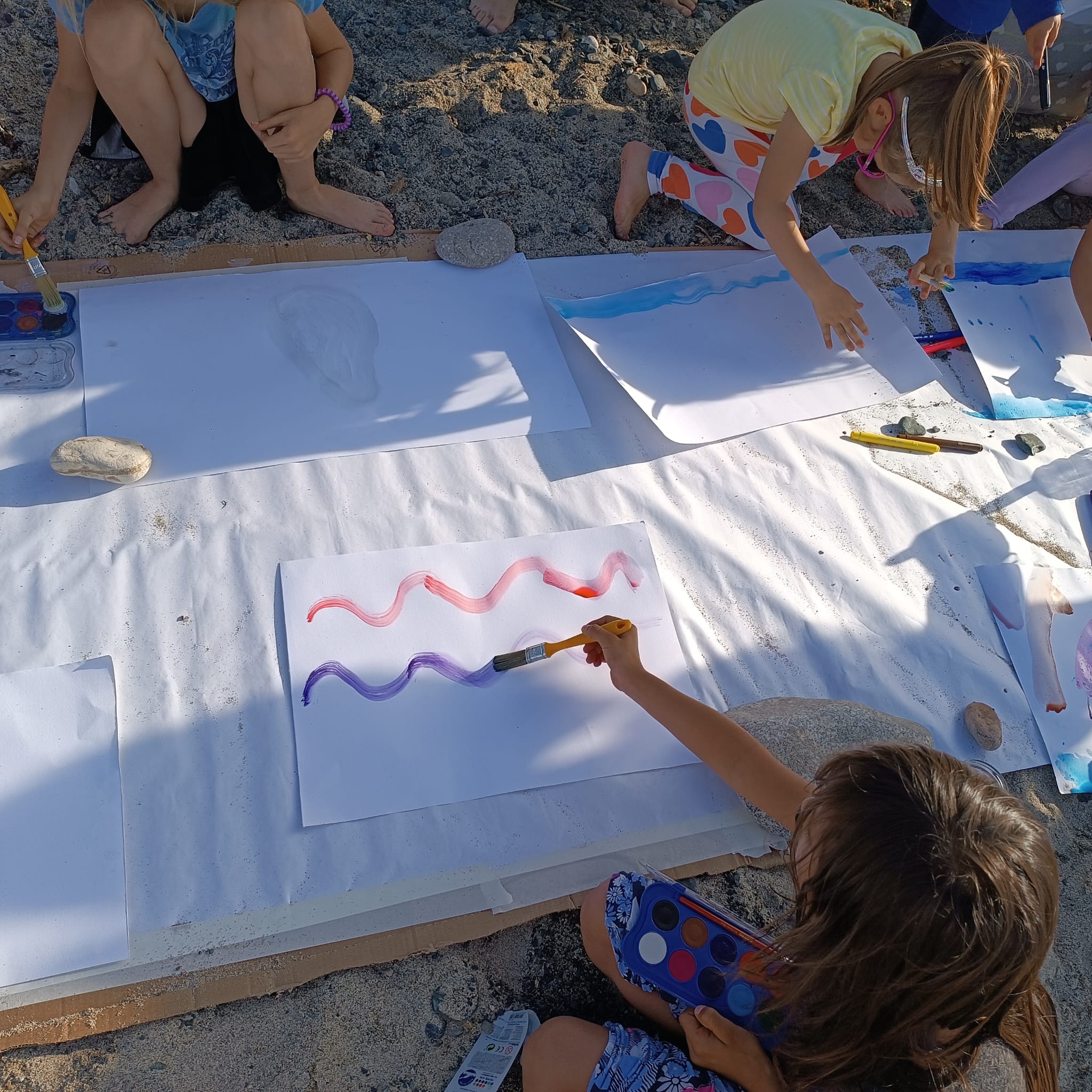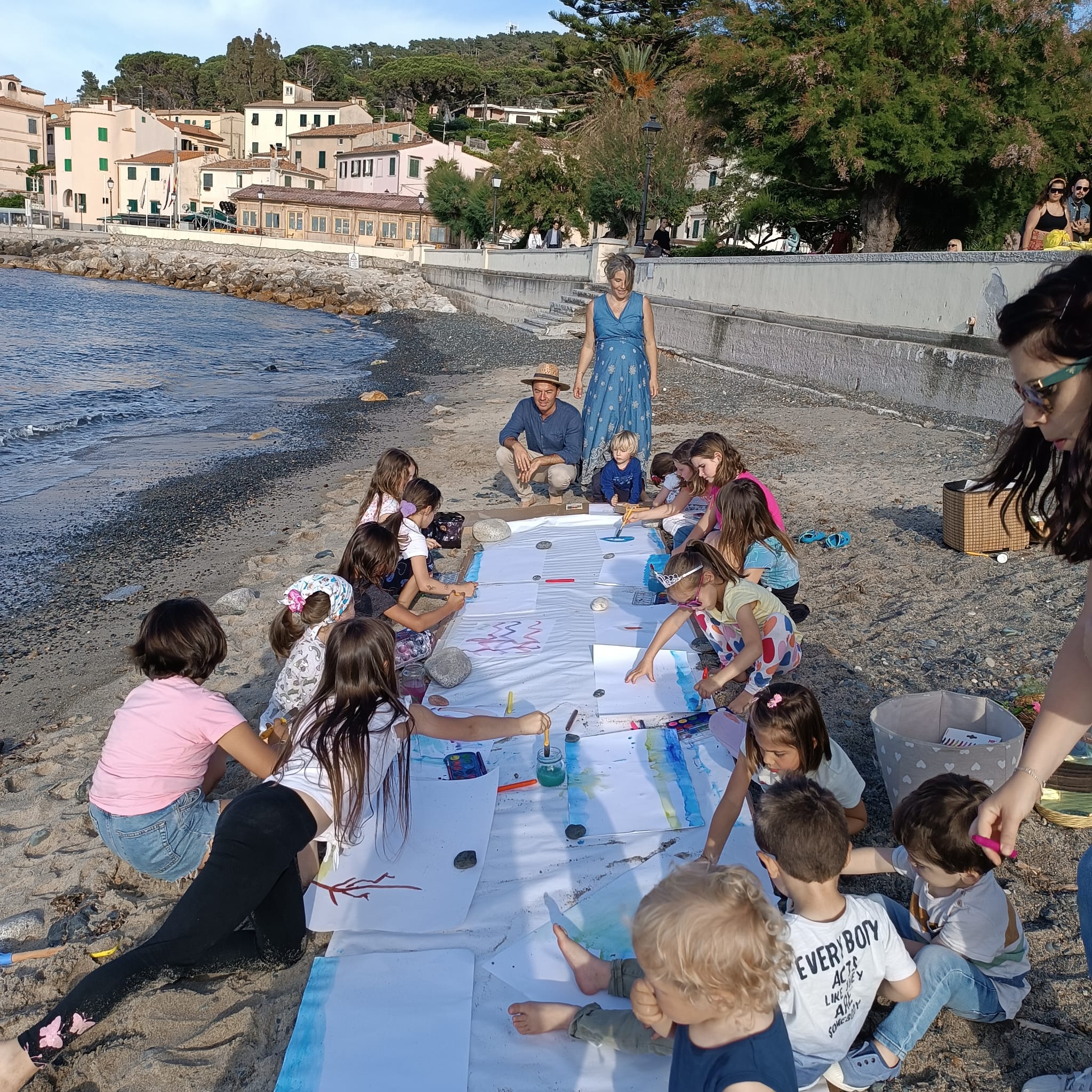 Ora il Terramare LAB diventa un momento immersivo nell’espressività artistica e ognuno di loro può liberare il desiderio di dare forma a un’emozione, dare colore a un disegno. Arriva il tempo di canalizzare ciò che si è osservato, toccato, annusato prima e riportarlo su una pittura, una forma, un colore… Accompagna questo tempo la melodia delle onde che si infrangono sulla battigia, i gabbiani che volteggiano sopra di loro, le vele che lentamente sfilano sul mare.
