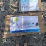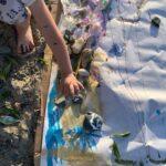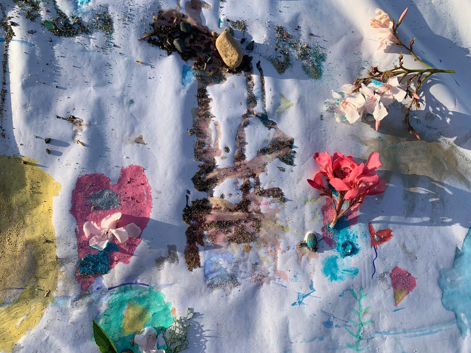 Durante il laboratorio si avvicinano curiosi alle banche dei semi, ne scrutano le forme e capiscono la perfezione delle forme e delle tecniche di diffusione che hanno sviluppato in natura. Poi come avessero nelle mani la cosa più preziosa del pianeta, la stringono gelosamente e nei minuti che passano le loro piccole mani umide conciano la buccia del seme, quasi sapessero che gli fa bene tenerli un po’ in mano prima del distacco. Prontamente preparano il letto di semina, mettono a dimora la promessa di un albero o di un fiore e con la data e il loro nome lasciano il vasetto da una parte. Lo affidano al sole e non vedono l’ora di bagnarlo!! Arriva poi il momento di andare, camminare intorno nel paesaggio raccogliendo foglie, semi, fiori o elementi della terra che possono diventare “tasselli” di un mosaico creativo o semplicemente ispirare la loro fantasia. Il raccolto a questo punto si avvicina ad un ampio foglio bianco di circa 10 mt steso sulla sabbia dove i partecipanti trovano pennelli, acquerelli e pastelli colorati.