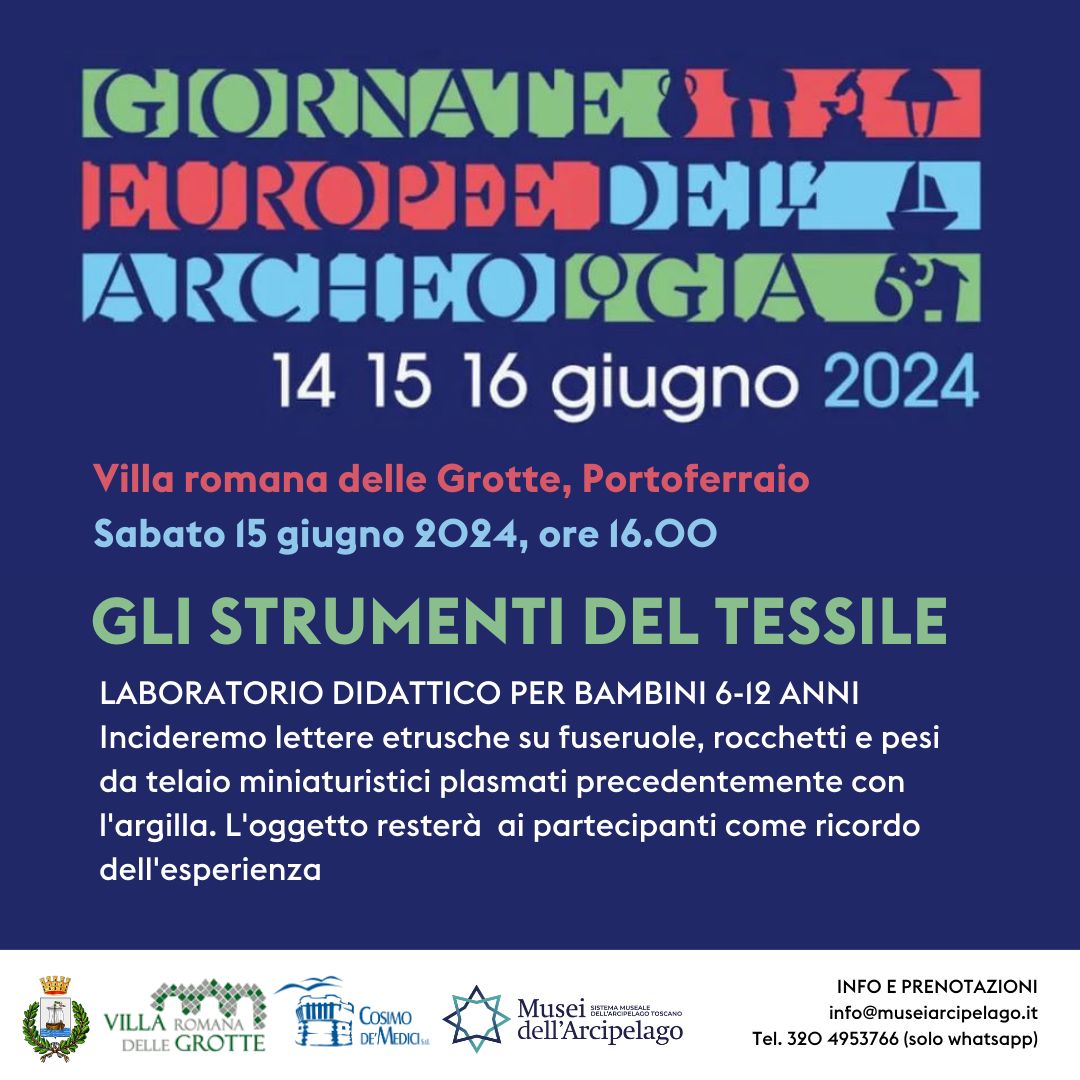 • Presso la suggestiva villa affacciata sulla rada di Portoferraio, sabato 15 giugno 2024, alle ore 16.00, si terrà “Gli strumenti del tessile” – laboratorio didattico per bambini 6 – 12 anni in cui si incideranno lettere etrusche su fuseruole, rocchetti e pesi da telaio miniaturistici plasmati precedentemente con l’argilla. L’oggetto creato resterà ai partecipanti come ricordo dell’esperienza