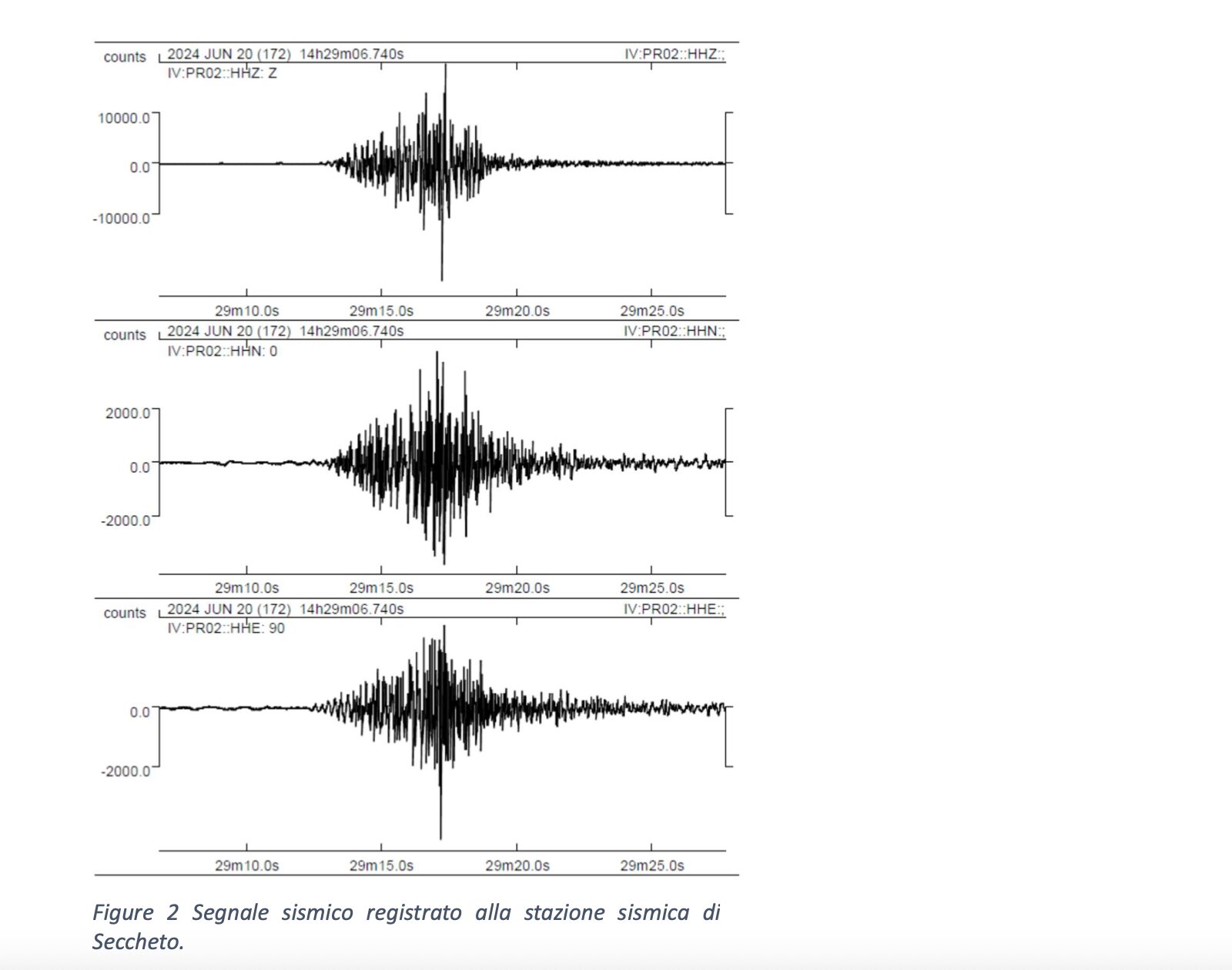 Il rapporto preliminare sulla registrazione dell'evento sismo acustico registrato oggi
