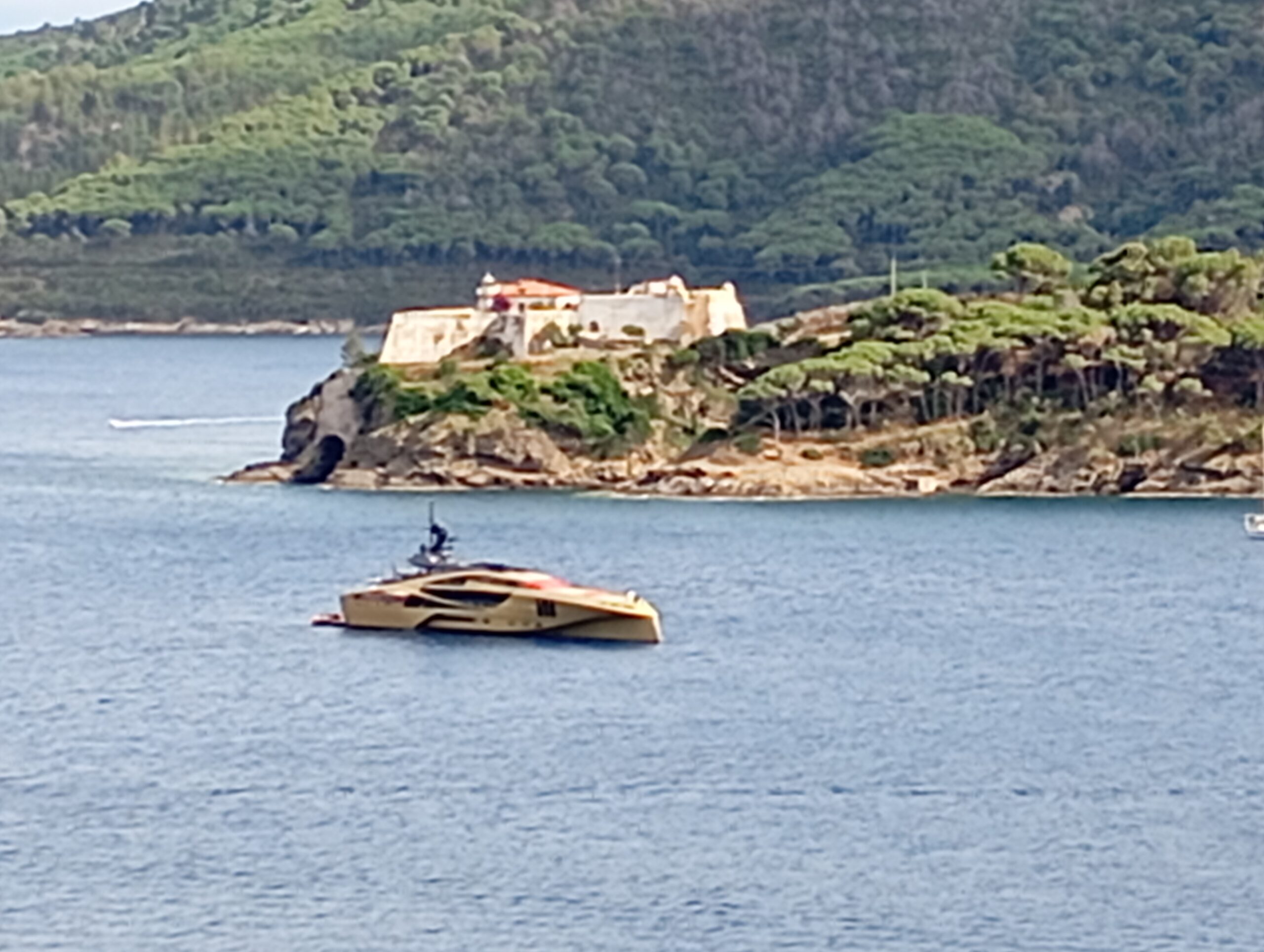 E’ tornato all’isola d’Elba il Khalilah, lo yacht completamente dorato che e non passa di certo inosservato. Il superyacht Khalilah di 49 metri di lunghezza, si trova da due giorni alla fonda al largo di Porto Azzurro, fra Punta dello Stendardo (sotto Forte San Giacomo) e il Forte di Focardo