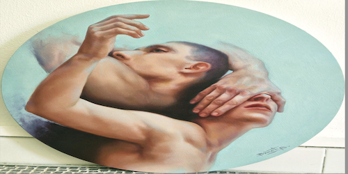 Belinda è un animo inquieto, che dipinge da sempre, alla ricerca continua e rigorosa di nuovi spunti, con corpi e mani che si intrecciano in complessi studi anatomici che perfeziona e talvolta distrugge in sfondi che si dissolvono per poi ricomporsi, quasi a simulare il suo animo, sempre alla ricerca, come si addice agli artisti, mai paghi del loro lavoro e sempre tesi ad esplorare nuovi percorsi espressivi per uscire dal loro “esilio” spirituale.