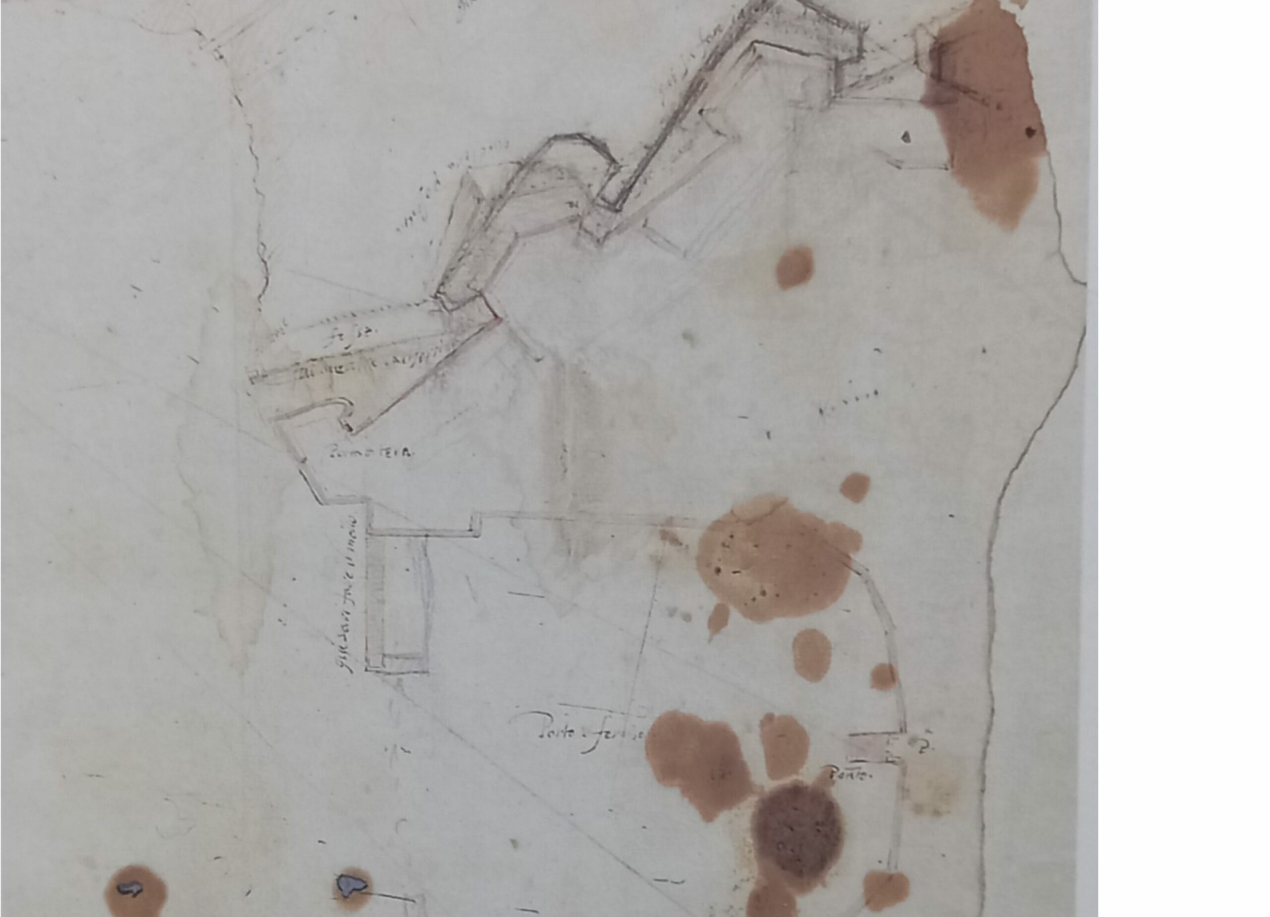 (Portoferraio .Progetto del fronte di terra 1574.Gabinetto disegni e stampa degli Uffizi. Particolare.Bernardo Buontalenti)