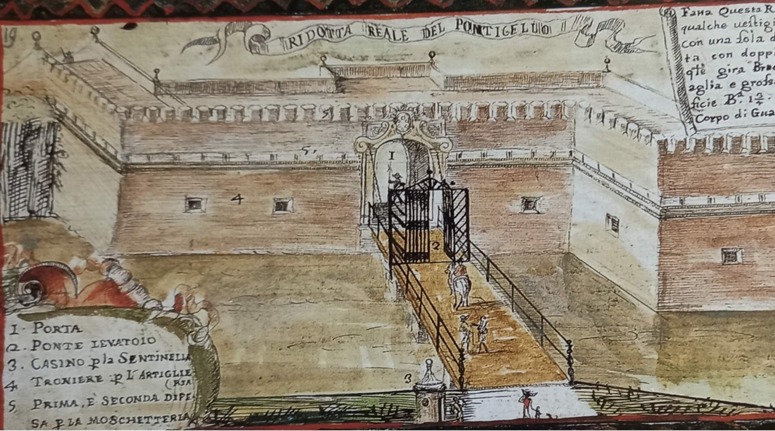 Osservatosi che il fosso del Ponticello era assai stretto,senza essere difeso da alcuna fortificazione di alga,e di pantano,fu allargato un terzo di più di quello che era .facendovi quattro buone Ridotte a difesa della scarpa del medesimo.Fu costruito in ognuna il corpo di guardia per l’alloggio dei soldati.