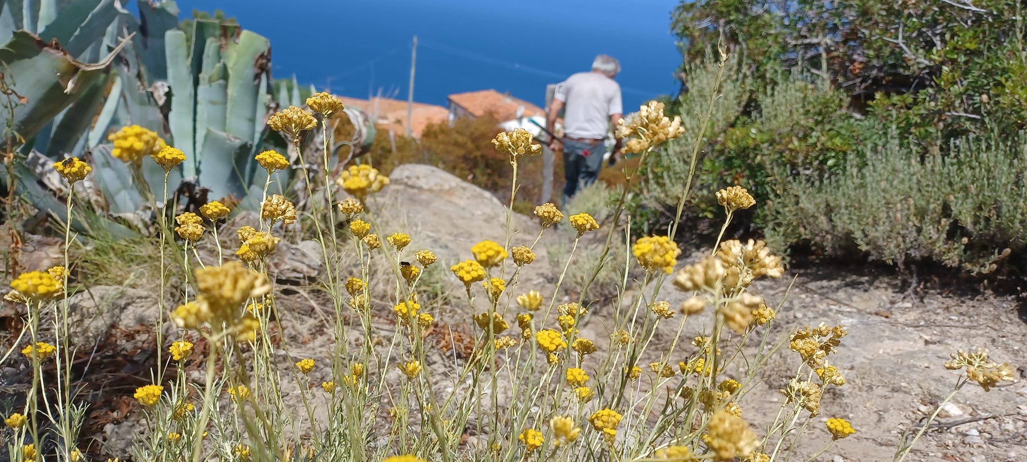 Svegliarsi all’alba per andare a ripulire e sistemare un sentiero sul versante ovest dell’isola d’Elba, un antico viottolo che è stato ribattezzato il “sentiero delle poesie” perchè ospita una serie di pannelli con i brani di autori del posto dedicati al mare e alla natura selvaggia del posto.