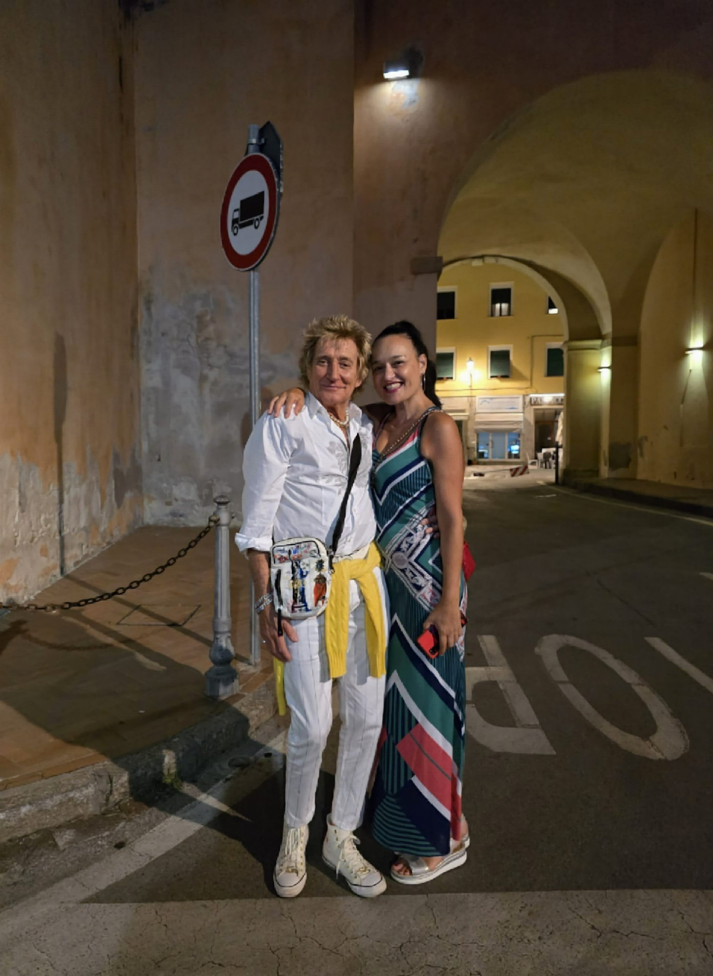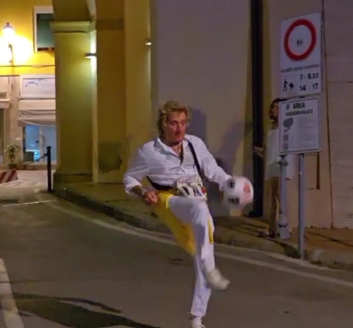 “Rod Stewart non è solo una leggenda del rock, ma anche un grande appassionato di calcio che se vede un pallone , anche per strada, non esita a fare qualche tiro”, ha dichiarato l’ artista tifernate Moira Lena Tassi che ha incontrato ieri sera il leggendario cantante nel pieno centro storico di Portoferraio. Moira Lena Tassi non si è limitata solo a complimentarsi con la star inglese per il suo recente trionfo a Lucca, al Summer Festival lo scorso 7 luglio , ma ha anche potuto apprezzare le sue ” doti calcistiche”: una serie di colpi di testa e palleggi attirando gli sguardi incuriositi e ammmirati dei numerosi turisti presenti. Rod noto anche come Sir Roderick David è da sempre un acceso appassionato di football e tifoso del Glasgow Celtic. In tempi non sospetti, prima di dedicarsi completamente alla musica, sfiorò un contratto da calciatore professionista.