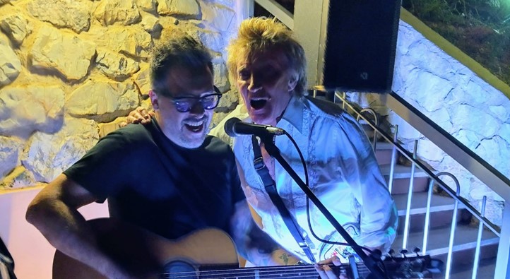 A Rod Stewart piace l’Elba, e non perde occasione per fare una sosta sull’isola. Non è la prima estate che in cantante inglese (79 anni portati benissimo, 120 milioni di dischi venduti) trascorre qualche giorno ll’Elba, spesso con la sua barca, ma non era mai successo che socializzasse così tanto con le persone presenti, al punto da eseguire anche qualche canzone dal vivo. Quest’anno era stato avvistato lunedì 8 luglio a Portoferraio in darsena, ma il giorno successivo ha fatto una apparizione più consistente in un ristorante sul mare, La Caletta a Porto Azzurro. Arrivato direttamente in barca, è salito sulla terrazza dove era in corso una festa privata per celebrare un compleanno, nella quale la colonna sonora era suonata dal vivo dal Trio delle Meraviglie, noto gruppo musicle elbano. Attirato dalla musica “british” del Trio, Rod Stewart si è fermato dapprima ad ascoltare, poi si è unito al gruppo cantando anche una sua canzone, Sailing, invitando anche il pubblico presente a fare il coro con lui. Nel video l’arrivo del cantante e il momento in cui si unisce alla band. La foto è di Viola Colombi.