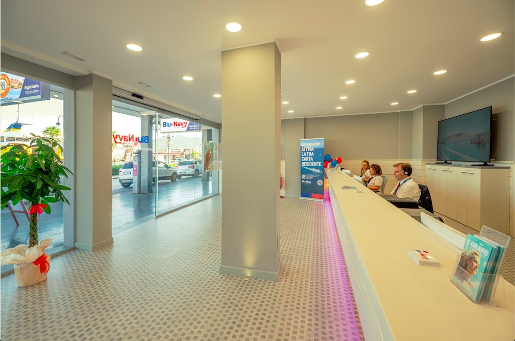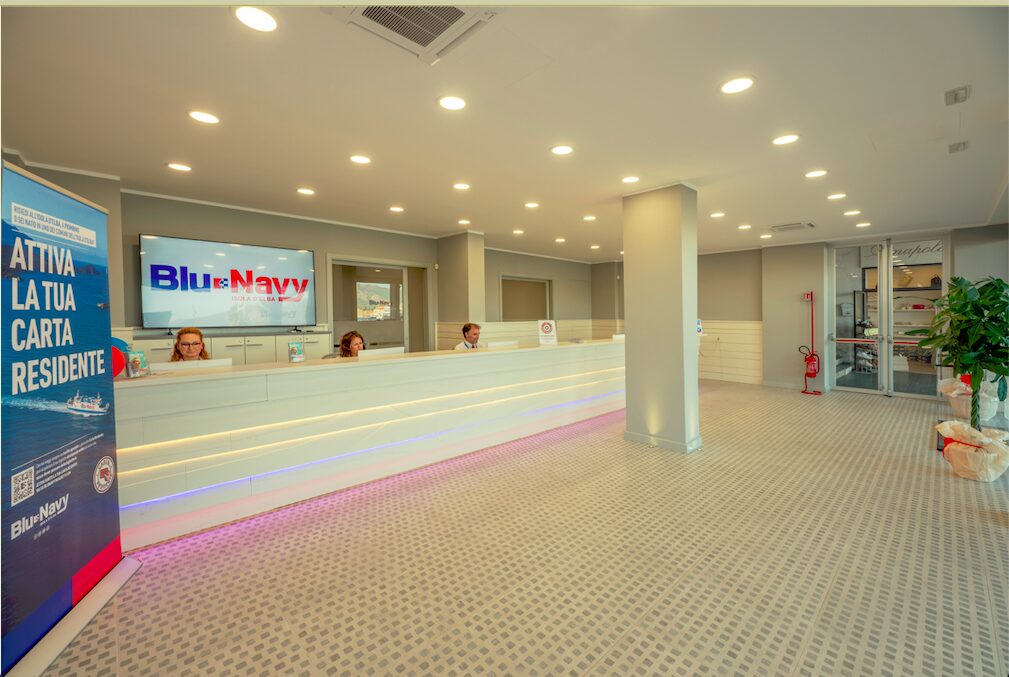 La prima cosa che salta all’occhio è il bello e la funzionalità ma anche la minuziosa attenzione all’immagine della compagnia e dell’isola d’Elba attraverso la multimedialità. Parliamo della nuova biglietteria della Blu Navy in calata Italia a Portoferraio inaugurata nei giorni scorsi. Un ampio salone dotato di grandi schermi che fanno vedere alcune straordinarie immagini dell’isola e le peculiarità dei traghetti Blu Navy, accompagnate dalle descrizioni degli uomini e delle donne della compagnia. Infine un ampia reception per accogliere i viaggiatori. All’inaugurazione era presente l’amministratore delegato Luca Morace accompagnato dal presidente Vincenzo Gorgoglione. Con loro e fra i numerosi ospiti, il nuovo Comandante del Porto di Portoferraio, Capitano di Fregata Floriana Segreto, il Comandante della Compagnia Carabinieri di Portoferraio Capitano Giuseppe Boccia, il sindaco di Portoferraio Tiziano Nocentini e altre autorità civili e militari. Dopo il taglio del nastro è stato offerto un buffet.