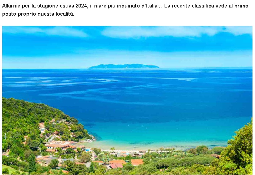 “Gentile direttore – scrive il sindaco – è con estremo disappunto che troviamo associata al vostro articolo dal titolo ‘Il mare più inquinato d’Italia sarebbe proprio questo: la recente classifica’ la foto inconfondibile di una delle località simbolo di Portoferraio e dell’Isola d’Elba, vale a dire quella del golfo della Biodola. Non discutiamo sui contenuti giornalistici del vostro articolo, fra l’altro di difficile interpretazione, nei quali comunque le parole ‘Portoferraio’ e ‘Isola d’Elba’ non sono neanche contenute, ma sulla foto utilizzata sotto il titolo, addirittura pubblicata con la didascalia ‘Mare più inquinato’. La inconfondibile riconoscibilità della spiaggia della Biodola in questo contesto prefigura, in un momento di massima attenzione per le località turistiche come la piena stagione estiva in corso, un messaggio fuorviante e un conseguente danno d’immagine per Portoferraio e per l’Isola d’Elba che vi invitiamo a risarcire quanto prima almeno con una adeguata rettifica ed un chiarimento. Ad ulteriore rafforzamento dell’inappropriato uso del vostro messaggio mediatico, vi allego le più aggiornate analisi effettuate dall’ARPAT, l’Agenzia Regionale per la protezione ambientale della Toscana, dove si definisce ‘eccellente’ la qualità delle acque della Biodola, come del resto quella di tutte le località dell’isola d’Elba prese in esame dall’ultimo campionamento datato 8 luglio 2024. Rimango in attesa di conoscere tempi e modi nei quali vorrete porre rimedio a questo evidente errore di impaginazione del vostro articolo”.