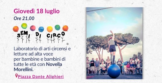 Il primo appuntamento dedicato ai più piccoli e alle loro famiglie giovedì 18 luglio alle ore 21,00 in Piazza Dante Alighieri (piazza del comune).