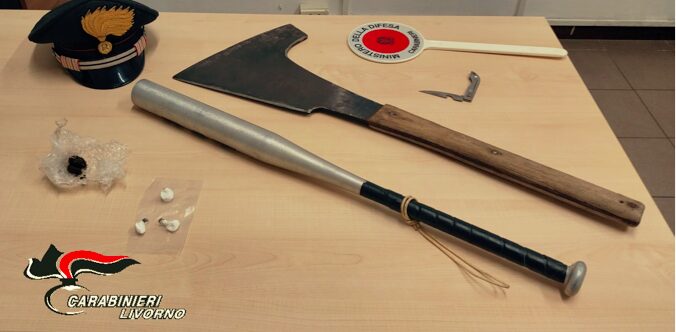 In particolare, nel corso dei controlli alla circolazione stradale, un 55enne, già noto alle forze dell’ordine, è stato fermato alla guida della sua autovettura e, sottoposto a controllo etilometrico, è risultato avere un tasso alcolemico pari a 0,85 g/l. Patente di guida ritirata ed autovettura affidata ad una terza persona idonea alla guida. Nel corso di tali accertamenti, i militari hanno approfondito il controllo trovando all’interno del veicolo sostanza stupefacente del tipo cocaina pari a circa 0,70 grammi, nel bagagliaio dell’auto una mannaia di quasi un metro di lunghezza ed una mazza da baseball in metallo il cui porto era assolutamente ingiustificato a quell’ora della notte e perché sull’isola non risultano presenti campi da baseball mentre addosso all’uomo è stato rinvenuto un coltello con lama a scomparsa. In ragione di tali riscontri, la perquisizione è stata estesa all’abitazione all’interno della quale sono stati rinvenuti ulteriori 1,80 grammi circa di sostanza stupefacente del tipo cocaina e circa 10 grammi del tipo hashish. L’uomo è stato pertanto segnalato alla Prefettura di Livorno quale assuntore di sostanza stupefacente per uso non terapeutico nonché denunciato all’A.G. labronica per porto ingiustificato di armi od oggetti atti ad offendere e per guida in stato di ebrezza.