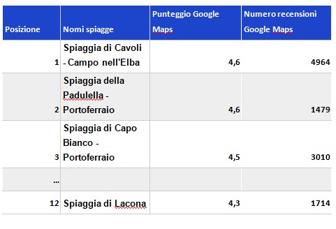 La classifica completa delle top 12 spiagge toscane con i dati intermedi e le rispettive località sono disponibili alla pagina: https://www.holidu.it/casa-vacanze/italia/toscana#migliori-spiagge