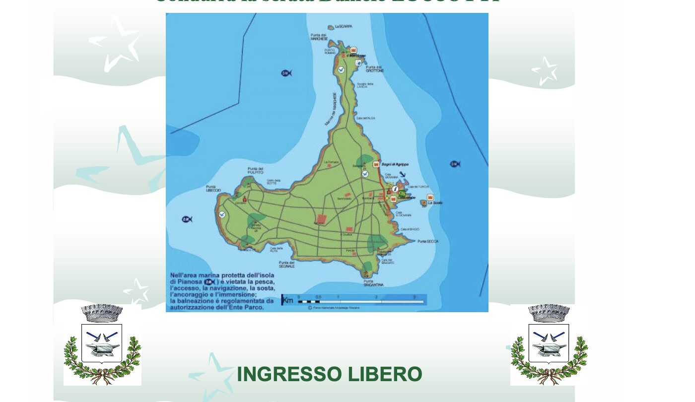 Verranno proiettati filmati estremamente suggestivi con note tecnico-scientifiche sull’isola di Pianosa tali da far comprendere a pieno l’essenza dell’isola e la sua conformazione sociale e antropica.