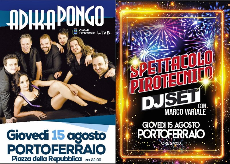 Sarà un ferragosto col botto quello organizzato dal comune di Portoferraio in collaborazione con la Pro Loco e la collaborazione dell’agenzia Live di Portoferraio. L’evento si terrà in Piazza Cavour nel cuore del centro storico e vedrà l’esibizione degli Adika Pongo un gruppo che sta girando l’Italia portando in giro , quella che viene chiamata “Soul Disco” e che era suonata da band come gli Chic, gli Earth Wind & Fire, le Sisters Sledge e la Kool & The Gang. Un vero “Tribute to The Disco” atto a creare un gioco fatto di buona musica e tanta energia condivisa con il pubblico. A margine dell’evento anche l’esibizione di quattro ballerini e ballerine brasiliane che si esibiranno nei balli caratteristici della terra del sole e con la Capoeira. A mezzanotte l’atteso evento dei fuochi d’artificio e a chiudere l’evento il D.J. set di Marco Varriale. Una serata imperdibile, in cui sarà impossibile non ballare e divertirsi. Inizio evento ore 22.00