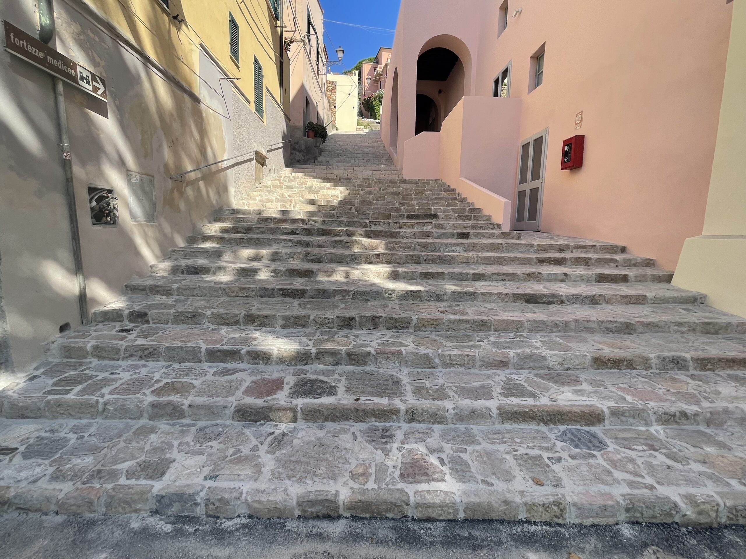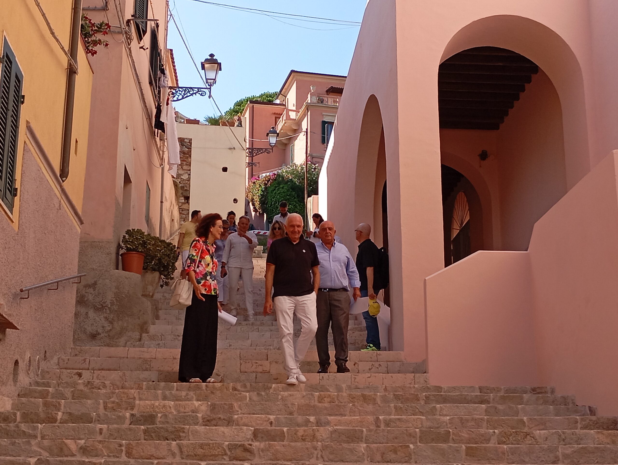 “Tutto il lavoro – ha ricordato l’architetto Elisabetta Coltelli – è stato autorizzato e realizzato sotto l’alta sorveglianza della Soprintendenza, mentre le operazioni di scavo sono state seguite da una archeologa specificamente incaricata, dato che tutta l’area del centro storico di Portoferraio è sottoposta a vincolo archeologico. La scalinata del Falcone versava in grave stato di degrado, sia per la presenza delle colate di cemento che ricoprivano quasi totalmente il percorso sia per il fondo disconnesso pieno di buche ed avvallamenti con una forte pendenza verso il teatro, alla struttura del quale provocava delle importanti infiltrazioni di acqua”.