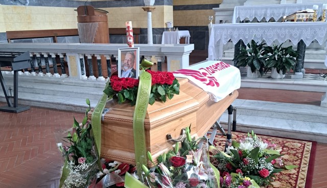 Commovente l’ultimo saluto dei suoi ex colleghi che al momento della discesa a terra del feretro gli hanno fatto ala con un applauso. Anche durante la funzione funebre, sul feretro, è stata apposta una bandiera della Toremar.
