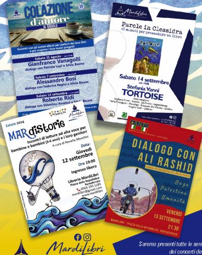 – Saremo presenti tutte le sere dei concerti al Teatro dei Vigilanti ” Renato Cioni”, come già successo nelle precedenti edizioni, in occasione della ventottesima edizione di Elba Isola musicale d’Europa, con una scelta di libri dedicati alla musica