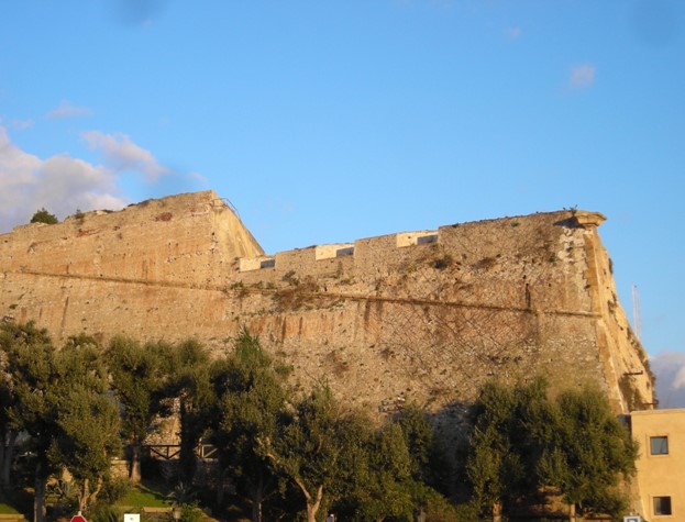 Questo fosso parte fu scavato nello scoglio con gran fatica e ingegno ,seguitando dalla suddetta controguardia una muraglia avanti la faccia del bastione della Cornacchia e per la parte di mezzogiorno una Falsabraca con la sua Banchetta…”