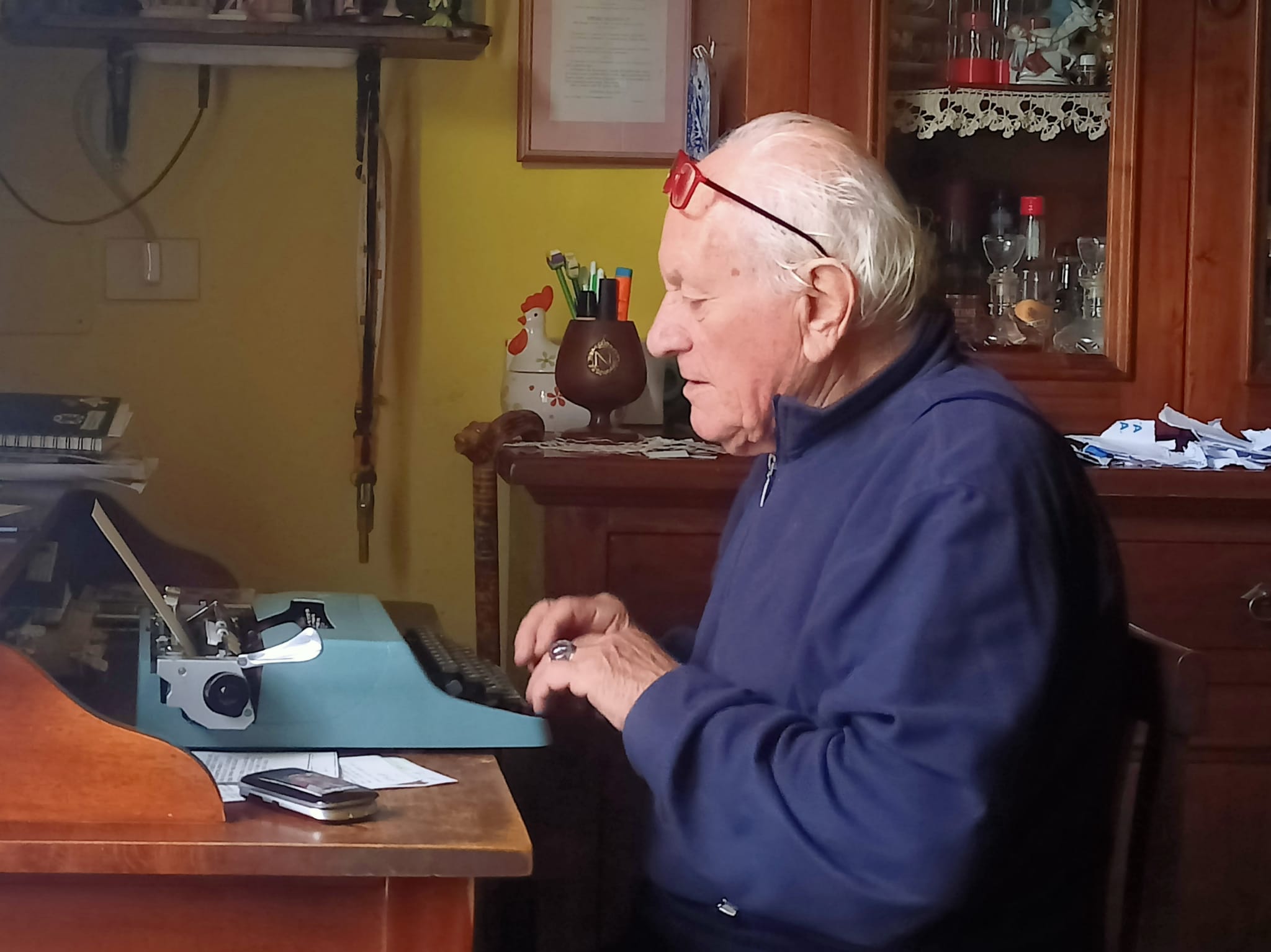 Ma quel che più amava fare Giuseppe era scrivere: poesie, ballate, storielle, canzoni, pensieri in rima. Componimenti che nascevano per caso, spontaneamente, dal semplice osservare da una panchina le persone che passeggiavano o chiacchieravano nei bar, o dal lasciarsi andare ad un ricordo di gioventù, ad un sentimento o una riflessione. Si appuntava le parole su un taccuino, per non rischiare di dimenticarle, e poi le trasferiva su carta, battendo i tasti della sua Olivetti Lettera 32, un vero gioiello degli anni ’60, sua fidata e inseparabile compagna in quella danza sinuosa tra foglio e tastiera.