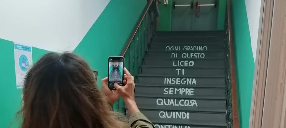 La scuola più fotografata d’Italia: i tanti turisti che salgono e scendono la scalinata Napoleone si fermano a leggere e a fotografare l’affascinante scritta all’ingresso dell’edificio scolastico che ospita il liceo delle Scienze Umane dell’Isis Foresi a Portoferraio all’isola d’Elba a pochi passi dalla residenza Napoleonica di villa dei Mulini.