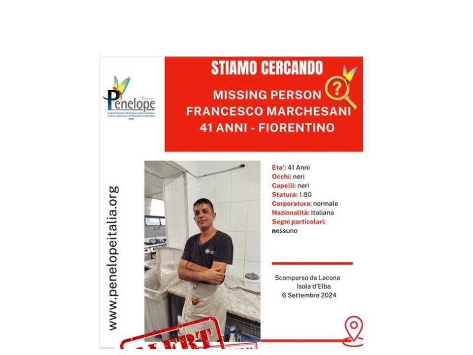 Si avvia alla conclusione la vicenda iniziata lo scorso 6 settembre, quando attraverso il sito Penelope.onlus fu lanciato l’allarme della scomparsa dell’uomo, che si era allontanato dal suo posto di lavoro senza farvi ritorno. Da allora un imponente dispiegamento di uomini e mezzi ha pattugliato il territorio sia a Lacona che nella zona di Monte Orello. Vigili del fuoco, la Protezione Civile Novac di Capoliveri e la laconese Mare e Monti . Aveva sorvolato l’Elba anche l’elicottero di Vigili del Fuoco “Drago” ed era stata attivata anche l’unità Mobile di Coordinamento delle ricerche dei Vigili del fuoco che ha operato con i cani e con i droni . Il caso di Francesco Marchesani è stato trattato anche nella trasmissione “Chi l’ha Visto?”, andata in onda la sera dell’11 settembre su Rai 3.