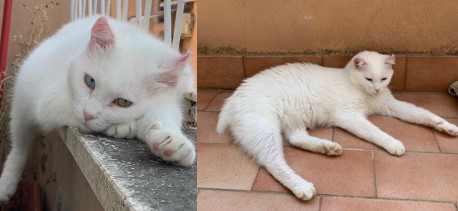 Nio è un bel gattone completamente bianco, con la coda molto corta e gli occhi di due colori diversi, uno azzurro e uno giallo. L’ho adottato due anni fa salvandolo da una situazione precaria nell’isola siciliana di Levanzo e grazie all’aiuto di alcune meravigliose volontarie è arrivato da noi a Roma.