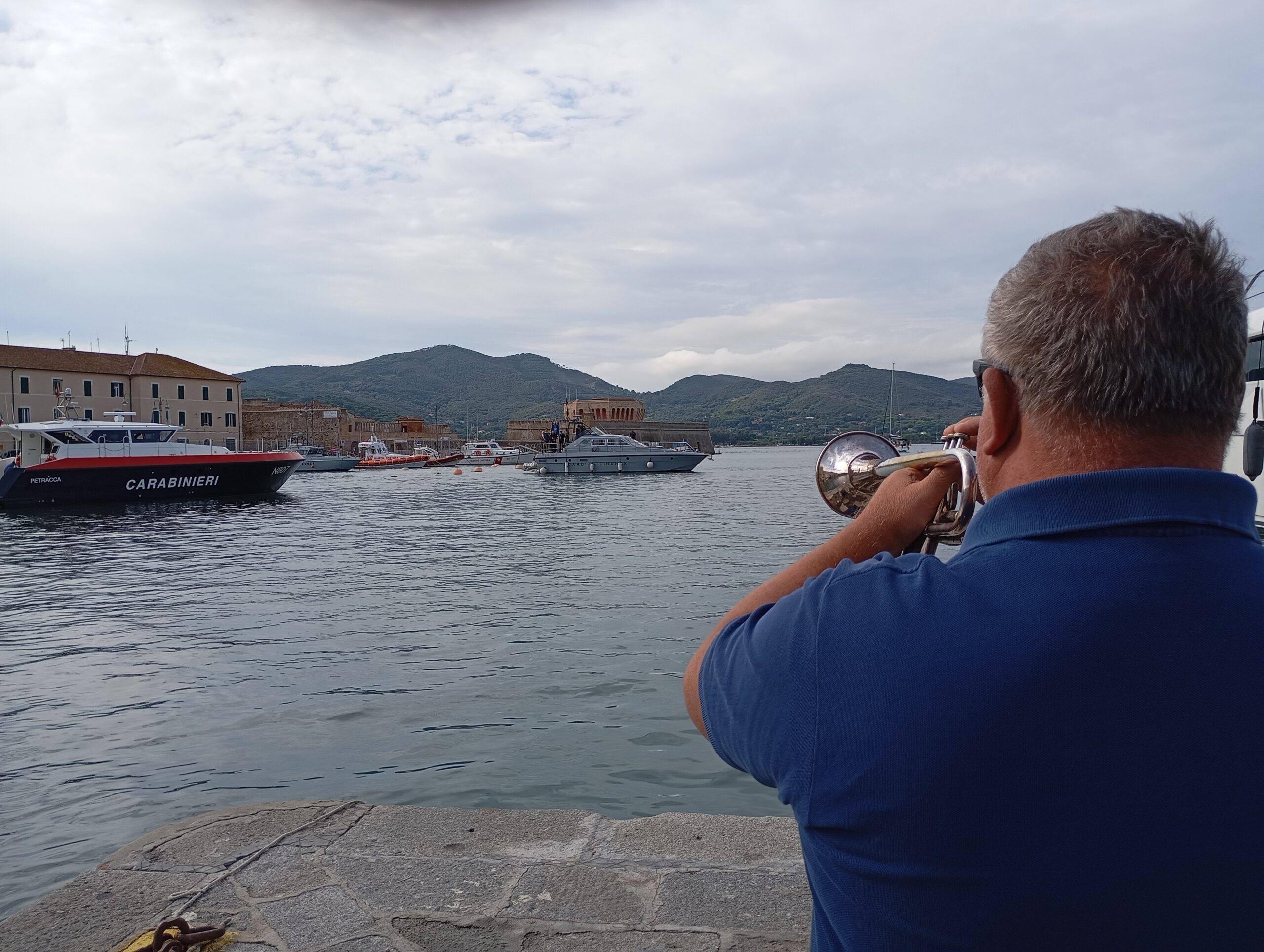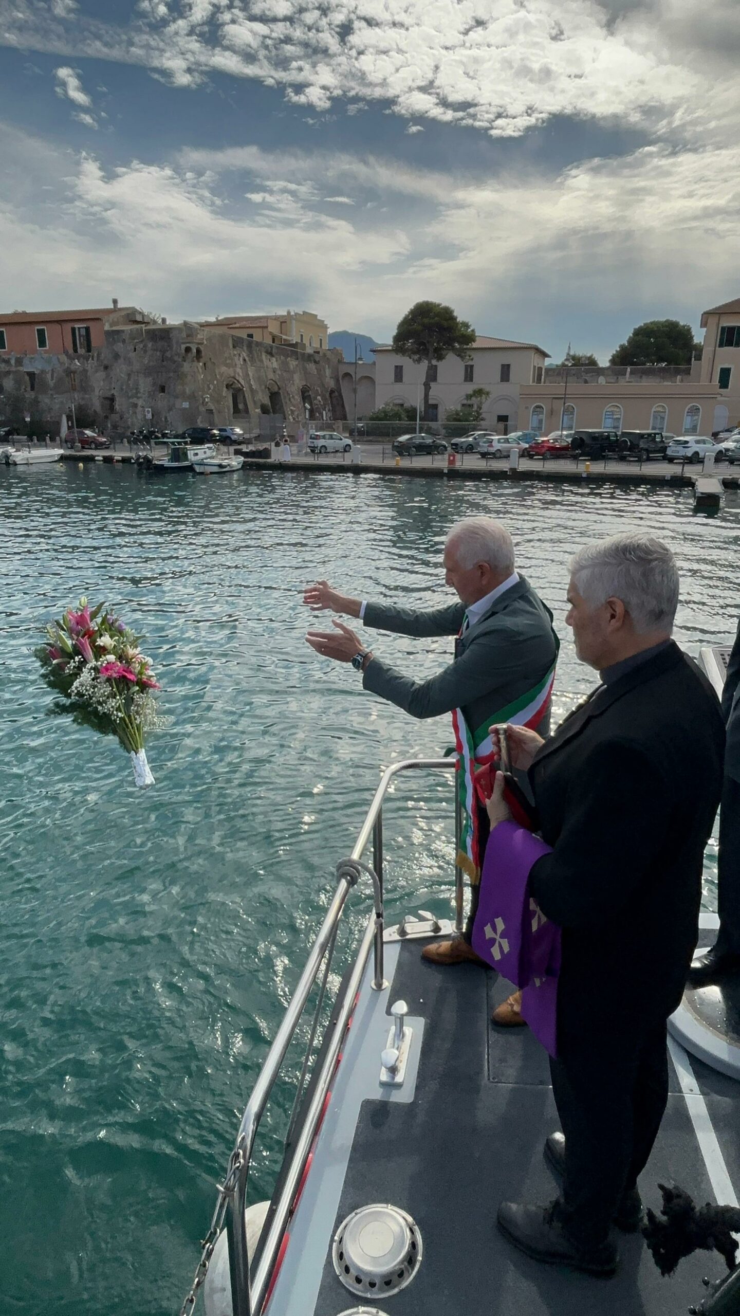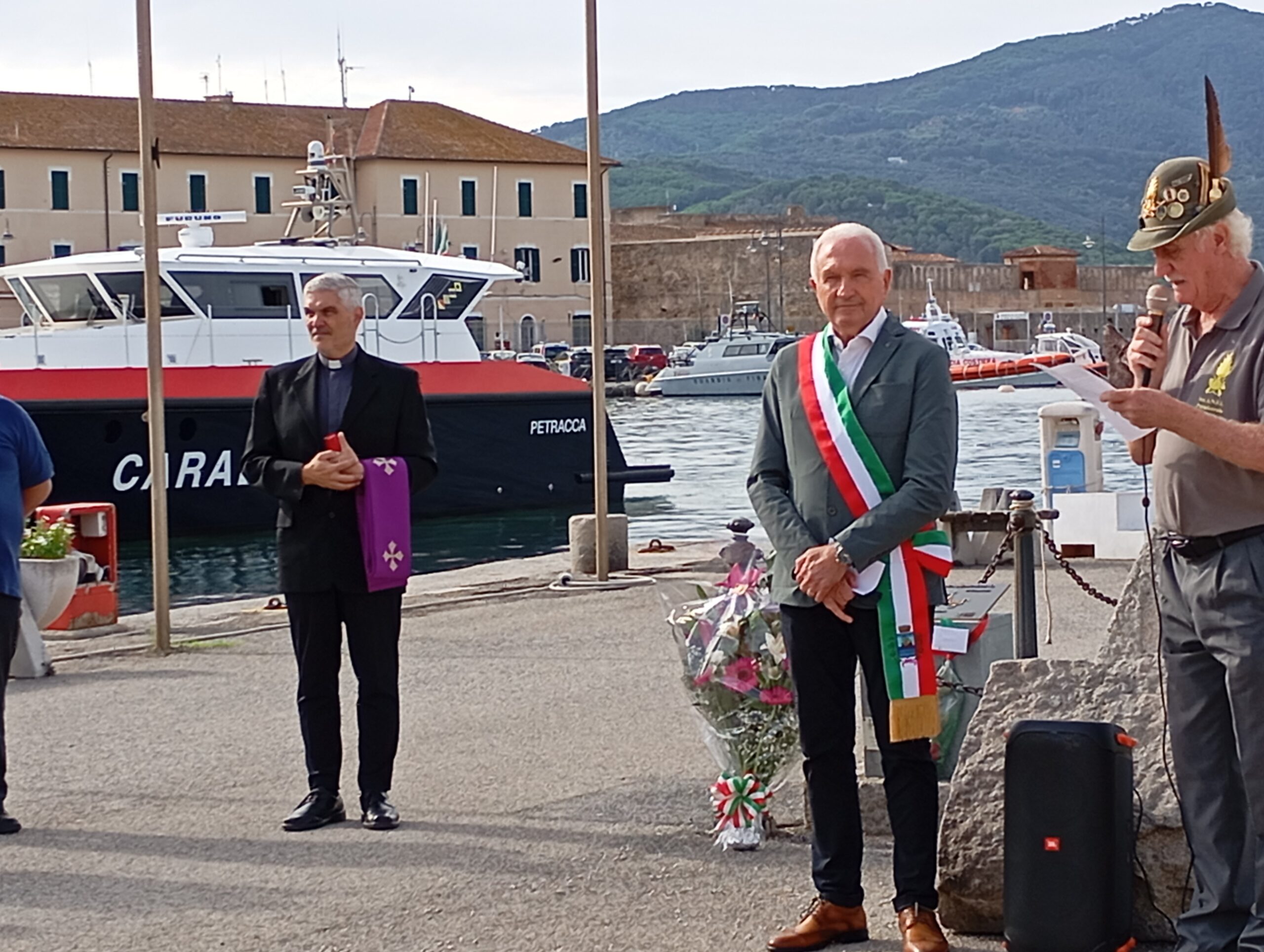 La cerimonia, alla quale hanno partecipato le autorità militari e civili della città e le associazioni combattentistiche e d’arma, si è svolta sul Molo Elba. Dopo il saluto e il discorso commemorativo del sindaco di Portoferraio Tiziano Nocentini, il primo cittadino è salito bordo di una motovedetta della Guardia di Finanza con il gonfalone del Comune per deporre un mazzo di fiori nelle acque della Darsena Medicea, che è stato benedetto dal parroco Don Kevin Sciberras mentre dalla banchina il trombettiere della Filarmonica “Giuseppe Pietri” intonava il “silenzio fuori ordinanza”. A seguire, la Santa Messa di suffragio che si è tenuta in Duomo.