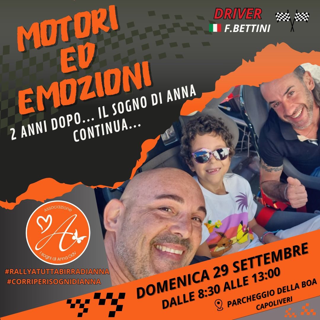 Domenica 29 settembre dalle ore 8,30 alle 13.00 circa I sogni di Anna e i suoi piloti del cuore Francesco Bettini e Luca Acri (che saranno al via del prossimo Rally Elba Storico del 27 e 28 settembre), presso l’area comunale di Capoliveri “Parcheggio La Boa”, organizzeranno un evento che ha lo scopo di regalare ai “nostri amici speciali” l’emozione e l’adrenalina di un giro con la macchina da rally.