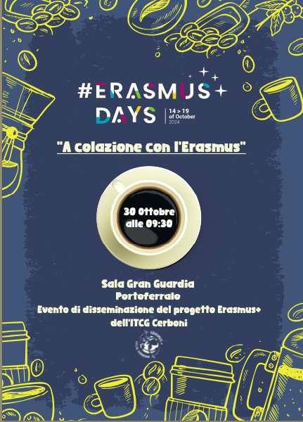 “#Erasmusdays 2024 – Progetto KA 121 – “A colazione con l’Erasmus” in programma per MERCOLEDÌ 30 OTTOBRE 2024 ORE 09:30 presso la Sala Gran Guardia di Portoferraio.