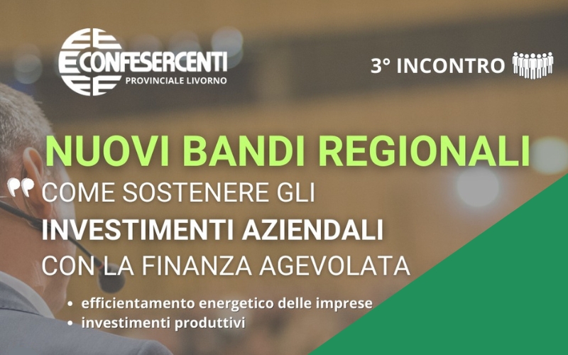 Martedì 𝟱 𝗻𝗼𝘃𝗲𝗺𝗯𝗿𝗲 ore 10,00: PORTOFERRAIO sala Pier Luigi Nervi (Info Point ex Gattaia) Calata Mazzini è stato organizzato un incontro a partecipazione libera, per presentare alle aziende e ai professionisti le opportunità riservate dai nuovi bandi della Regione Toscana mirati a supportare la creazione e la crescita di start up, a sostenere gli investimenti produttivi e a favorire la transizione ecologica ed energetica. “Grazie a queste misure della Regione Toscana – spiega Alessandro Ciapini, direttore provinciale della Confesercenti, le imprese potranno accedere a finanziamenti a tasso agevolato e a contributi a fondo perduto per progetti che puntano a migliorare la loro efficienza operativa e a favorire la transizione ecologica, oltre a sostenere le nuove iniziative imprenditoriali. Questo non solo rappresenta un’opportunità per le aziende di consolidarsi e di rinnovarsi, ma anche un incentivo a investire in tecnologie e pratiche sostenibili”. Nell’incontro, i relatori 𝙍𝙤𝙗𝙚𝙧𝙩𝙤 𝙋𝙚𝙧𝙞𝙖 – coordinatore Area credito e consulenza strategica G.M.S srl, e 𝙈𝙖𝙧𝙩𝙞𝙣𝙖 𝙂𝙤𝙙𝙖𝙣𝙞 – ufficio Livorno area credito e consulenza strategica G.M.S srl illustreranno le nuove misure cofinanziate nell’ambito del Programma Regionale FESR 2021-2027 dedicate al sostegno delle imprese. Modera gli incontri: 𝘼𝙡𝙚𝙨𝙨𝙖𝙣𝙙𝙧𝙤 𝘾𝙞𝙖𝙥𝙞𝙣𝙞 – direttore Confesercenti Provinciale di Livorno.