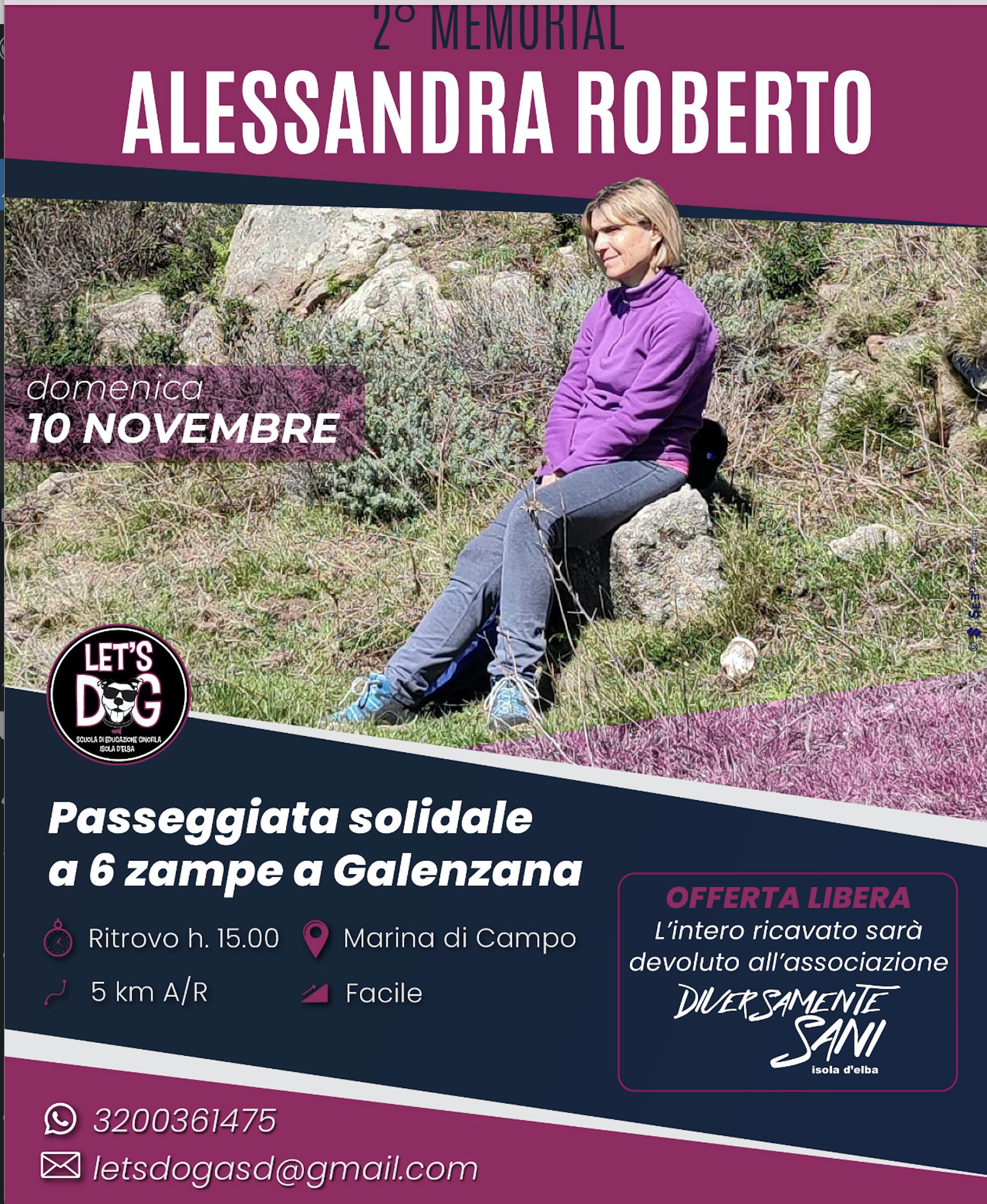 Vogliamo che il suo ricordo sia ancora vivo, era una persona splendida amante della vita, della natura in tutte le sue forme e degli animali e vi invitiamo quindi a partecipare numerosi a questa piacevole passeggiata benefica con i vostri cani, accompagnati dalle educatrici cinofile Let’s Dog.