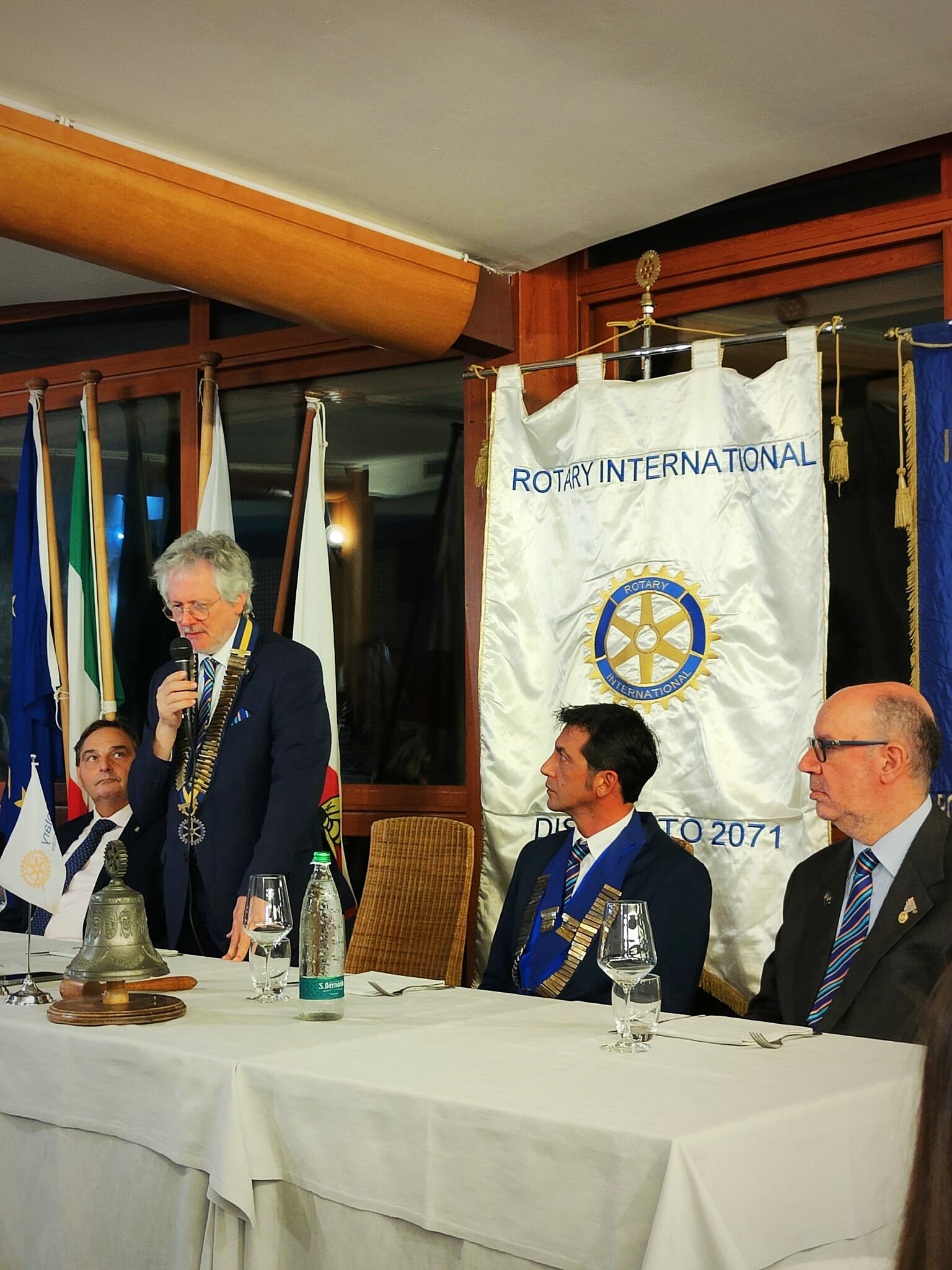 Il governatore ha ricordato inoltre i prossimi importanti appuntamenti rotariani tra i quali il SEFR, che si terrà a Siena il 9 Novembre e il concerto, i cui fondi saranno destinati ai Centri per la Pace del Rotary International, che si terrà il giorno 8 Dicembre presso il Teatro Era di Pontedera.