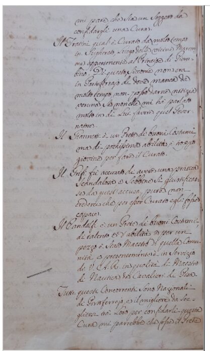 L’indicazione data sul nome di Pandolfi , quale migliore prete tra i concorrenti a cui consegnare il beneficio