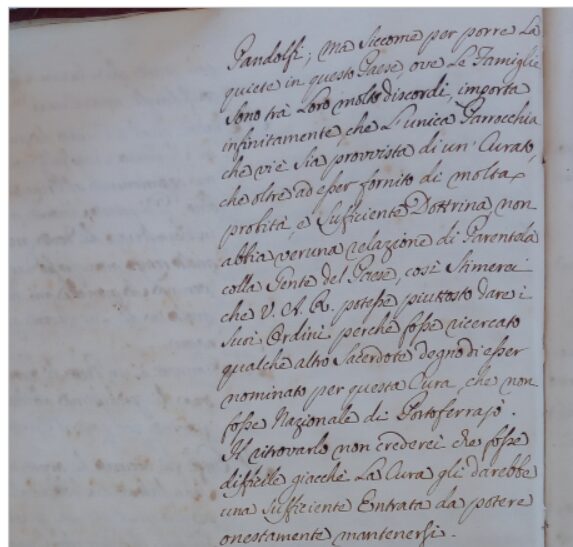 Cura mi parrebbe che fosse il prete Pandolfi; ma siccome per porre la quiete in questo Paese ove le famiglie